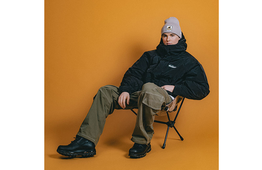 リフレクター入りのスピンドルでシルエットが調整できるフードにXLARGEのロゴをプリント。ボディ左胸にはWild Thingsのロゴパッチを配置。カラーはグレー、ブラウン、ブラックの3色展開。すべて¥43,000