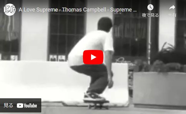 一方で、ニューヨークのSupremeからは『A Love Supreme』という作品が公開。ポップなナンバーと進化の一途をだどるトリック重視なビデオが主流だったのに対して『A Love Supreme』のそれは、気怠いジャズに(後にコルトレーンと知る)16mmで撮影されたモノクロ映像、ほぼ全編スロー再生動画という真逆のアプローチに、違和感を覚えなかったといえば嘘になります。当時スケート仲間たちと「ライディングはかっこいいけど、関係ない映像多くねぇ?」と、いかにもティーンらしい、作品の真意を理解することなく無駄に批評しあったことを記憶しております。