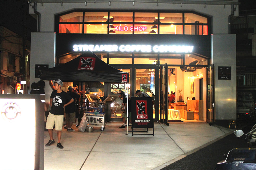 先週の土曜日(8月9日)より、バッグブランドのCHROMEがラテアートで知られるStreamer Coffeeの五本木店にショップインショップをオープンさせた。オープン前日となる8月8日の夜には同店舗でレセプションパーティが行われたので、VHSMAGのアートディレクターのKHとおじゃまさせていただくことに。