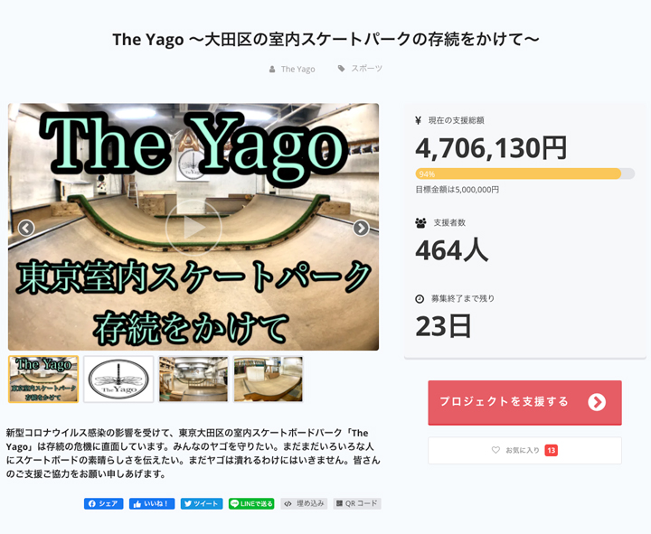 そしてうれしいのが、ふるさと納税の返礼品のようにサポート額によってさまざまなリターンがあるということ。自分たちの大事な場所を守る手助けができ、さらにオマケまでついてくるというのだからたまりません。苦境にあえぐパークオーナーやスケート関連企業のみなさん、クラウドファンディングを開始してみてはいかがでしょうか?