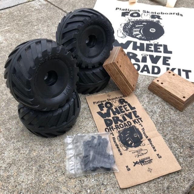 なんでもこのダートウィールはZaroshが手掛けているもので、なんと名門タイヤメーカーのGOODYEAR製。このウィールを履くことでこれまでスケートボードでは難しかった山道や砂利、土や芝生など悪路での走行が可能になり、クルーザーでも行けないところをスイスイ進むことができるとか。舗装面はもちろん、ありとあらゆる場所での走破性が魅力のウィールは口径約120mm、専用のライザーバッドやビスがセットになって¥15,000ほどでUnderdog Distributionが少数取り扱っているとのこと。
