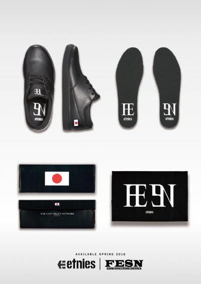 もうご存知の方も多いと思いますが、etniesより東京・中野発の映像プロダクションであるFESNことFar East Skate Networkとのコラボシューズがリリースされました。このニュースは個人的にも'90年代から一緒に撮影をしてきたFESNとのコラボとあり、特別な感情が湧いてくる一品です。