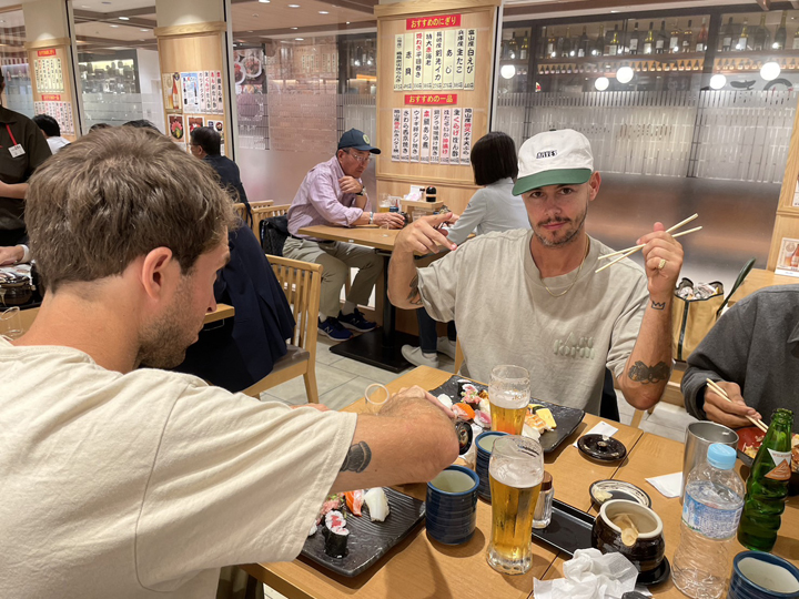 J: いろんなことがあった。東京のグランドファーザーバー、ヒップスポットで川にデッキを落としたこと、Y.E.A.T.のショーに行ったこと、名古屋でのディナー。