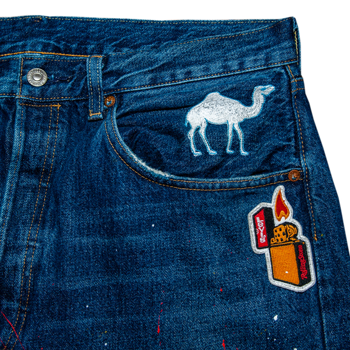 I: 自分も501で、ペンキは京都で推してる感じだったのでやりました。ラクダとライターは自分が吸ってるタバコがCamelということで。