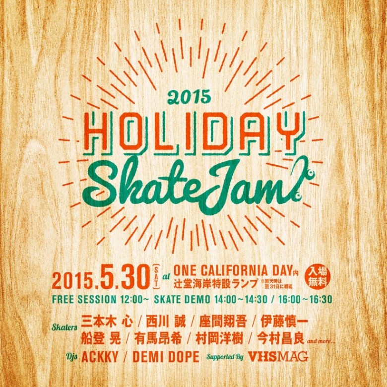 参加スケーターは三本木 心、西川 誠、座間翔吾、伊藤慎一、船登 晃、村岡洋樹、今村昌良、有馬昂希、片方 遥に加え、DJのAckkyとDemi Dopeがごきげんなサウンドを提供してくれる。