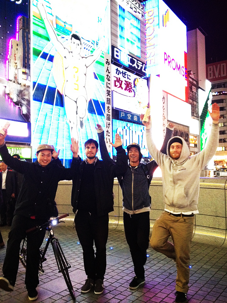 東京からはローレンス・キーフ、金子次郎、瀬尻 稜。フィルマーのパトリック・ウォールナーは上海から駆けつけて敢行された大阪・神戸ツアー企画の『関西万歳』。それぞれスタイルが異なるライダー3名を中心とした華麗なスケーティングはもちろんのこと、これまで『Meet The Stans』や『The Mandalay Express』といった旅ものの作品を数多く手がけたパトリック・ウォールナーの手腕もあり、かなりクオリティの高い作品に仕上がったのではないでしょうか? 聞くところによると、初日だけで驚異の18カットものフッテージが収録されたとのことです!!