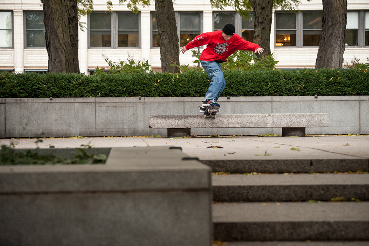 K: 間違いなくLOVE。滑れるものが多かったからね。シティホールやMUNIより断然いい。まあ、MUNIもいい感じだけど。ダウンタウンで滑る場所がなくならなくてよかったよ。MUNIはLOVEと似てるから。