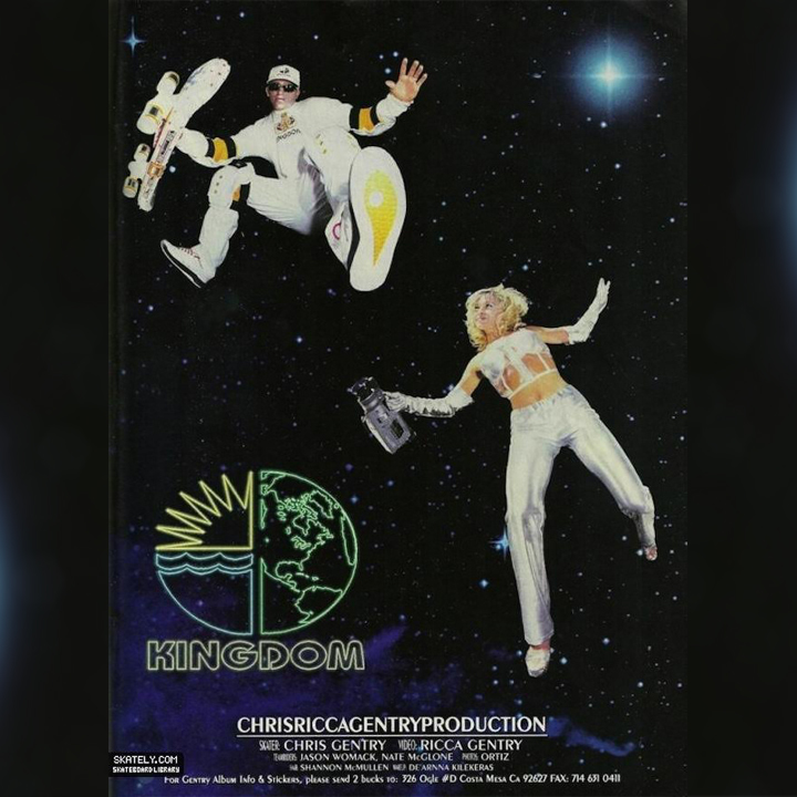 クリス・セン、コール、ハスラム、ジョスリン、マーコビッチ、キーフ…。なんだけど、ちょっと待った! 決して忘れてはならないクリスがいるではないですか。初代プロスケーター兼白人ラッパーとして活躍していたクリス・ジェントリー。ジェレミー・ロジャースよりもずっと以前から活動していて(早すぎて周りもついてこれてなかった感が)、KINGDOMなるブリンブリンなデッキカンパニーを主宰していたツワモノ。斬新なコンセプトとビジュアルでワン&オンリーな存在として注目を集めておりました。
