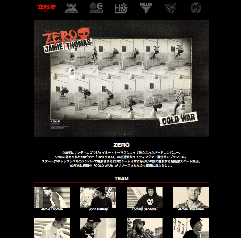 サイトの構成は各ブランドのADやブランドの説明、ライダー紹介というもので、K&Kが取り扱うブランドの世界観を一気に知ることができるシンプルで見やすい内容となっております。