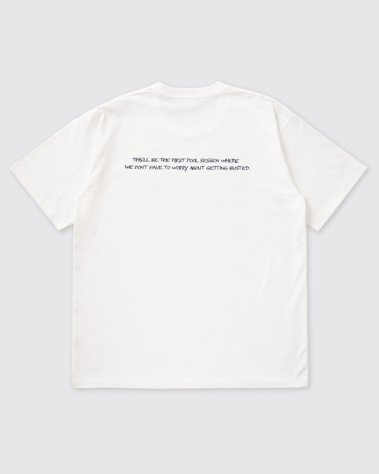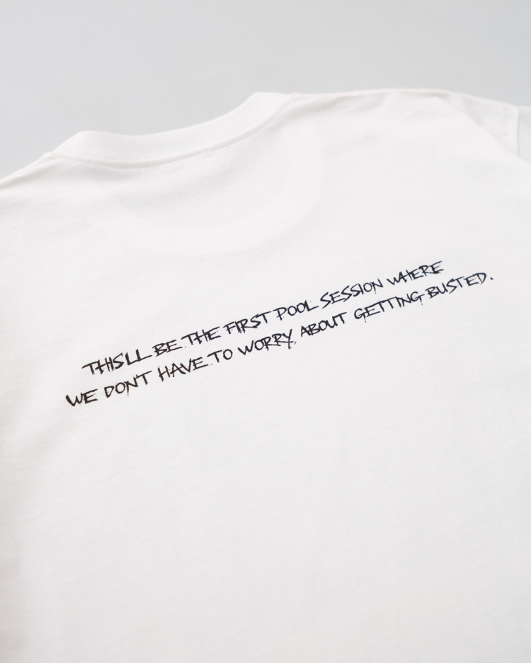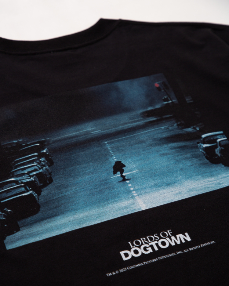 今回のTeeに刻まれた「They come from nothing to change everything」(何もない場所から現れすべてを変えた)という言葉こそ、Z-Boysという伝説の本質を射抜いたもの。富も名声も整った環境すら持たなかった彼らが手にしたのは、スケートボードとアスファルトを波に見立てる唯一無二のスタイルだけ。劇中で病に倒れたシドの自宅のバックヤードプールのシーンで発せられる「This'll be the first pool session where we don't have to worry about getting busted.」(捕まる心配をせずに済む、初めてのプールセッションだ)というセリフも、抑圧された日常から解放された自由を象徴しています。