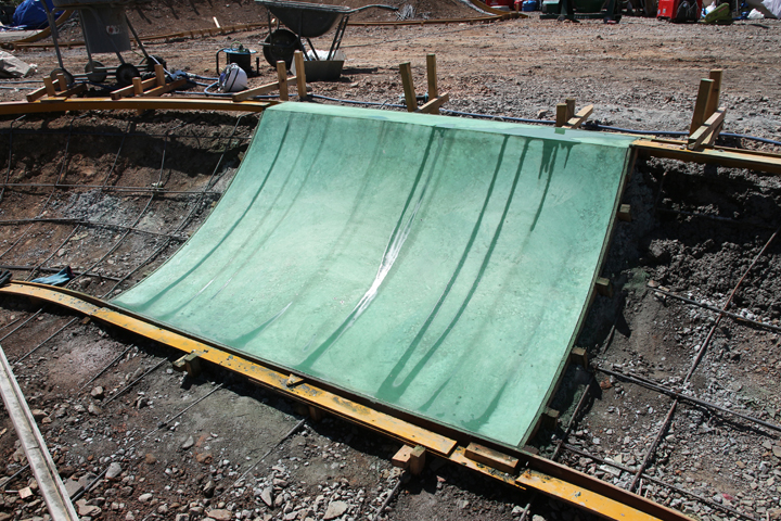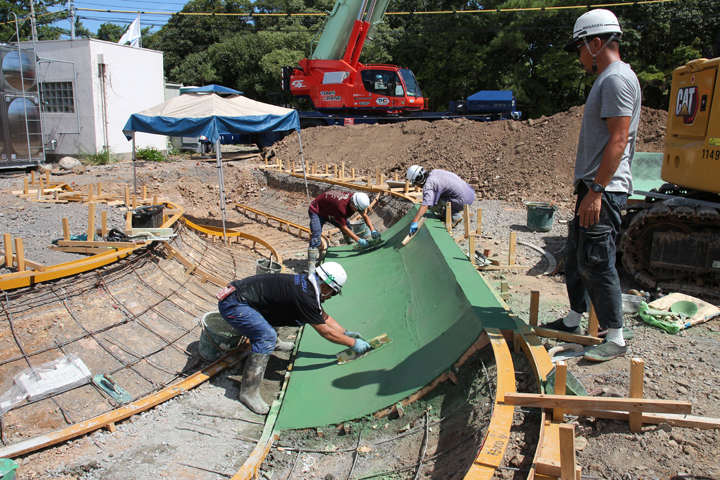 K: そうですね、通常のやり方というか…スケーターは基本的に土木の知識がないじゃないですか。だからセクションの表現の仕方がわからないんですよね。たとえばオレたちだったら「高さいくつの何千アール、ボトムがいくつで」と言えばすぐに理解できる。でもそう言ってもわかってもらえないからまず粘土で作ってもらうんですよ。それが一番表現しやすい。初めてパークデザインに関わる人とやる場合は粘土を使います。もしくは「どこどこのパークのどんなセクション」みたいな感じで進めていくこともあります。UZUPAのときもまず南のカッチャン(南 勝己)が粘土を捏ねましたね。