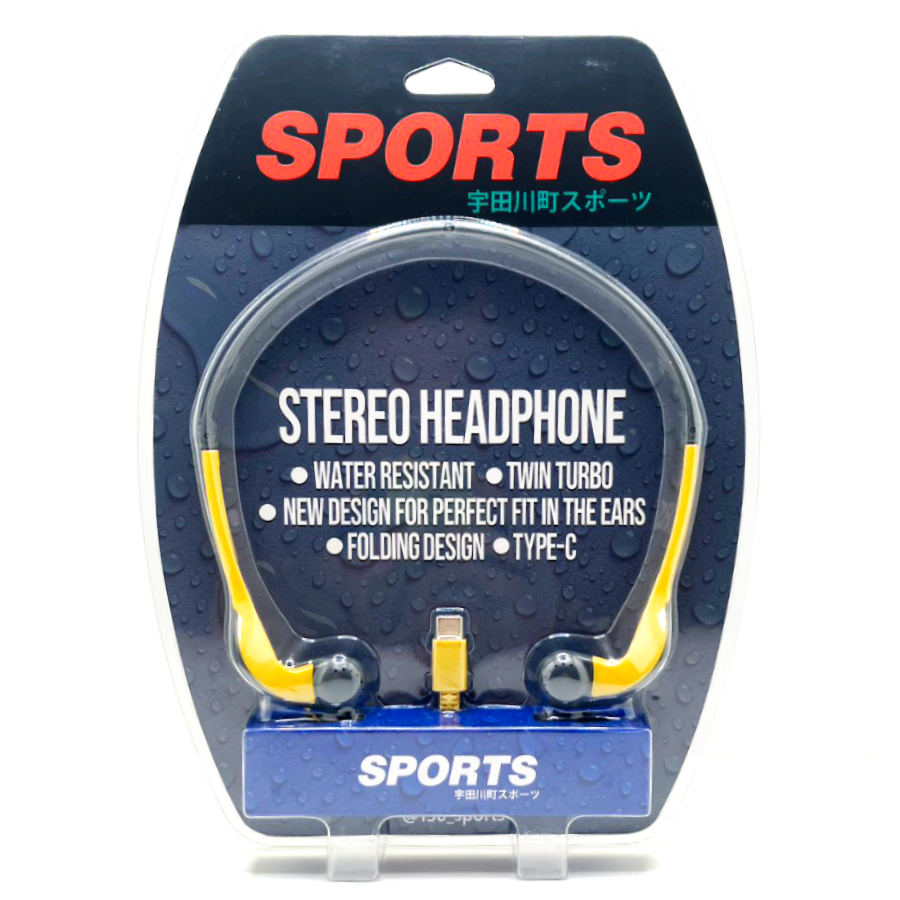 スケーターにも人気のヘッドホン、宇田川町SportsのStereo Headphoneに待望の新作が登場。人気のYellow/Grayの配色に折りたたみフレームとUSB-C端子を採用しパワーアップ。加えて新しいフォルムでモールド(金型)を作り直し、より立体的な形状へと進化したほか、ブリスターの形状も自立型へと進化しています。