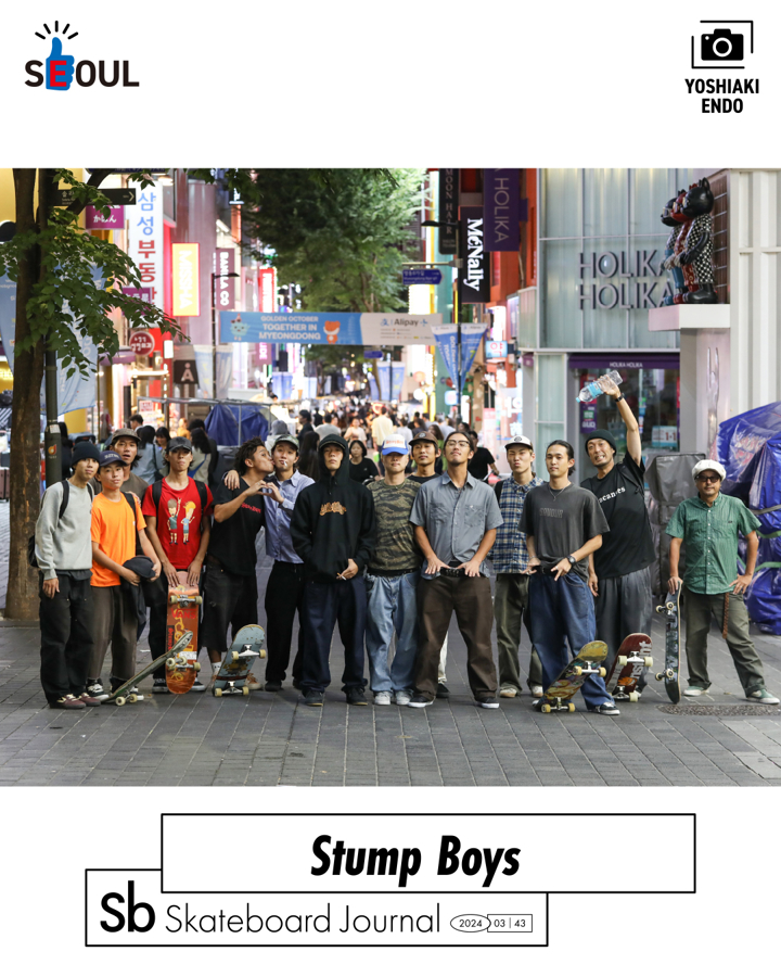 それで、今号のSbのグラビアですが村井カイトくんたちのSTUMP BOYSたちがソウルで数々のメイクをしてくれました。その全貌は彼らが今後発表する映像作品で堪能していただくとして、Sbではその一部のスタンプをグラビアページに綴りました。戸倉タイホウくんはじめ素晴らしいグラビアです。いわば、メトロを飛び出して異国のソウルでのスタンプラリーです。しかもそれは、STAMP(スタンプ)ではなく、STUMP(きりかぶ・こんせき)です。都市部の通常ワールドではいたって迷惑? 障害? のようなサウンドを、最高に心地良いBGMに感じるスケーターたちのスタンプをジャーナルしたグラビア。スタンプラリーのようなスタンプジャーナル、それがSb 1冊だったりします。ぜひ手にとって見ていただけたら幸いです。