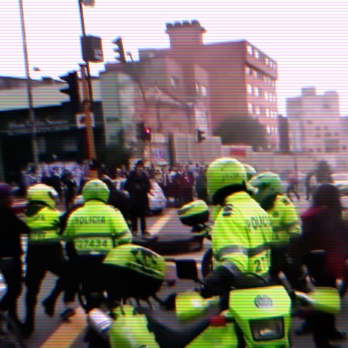 場所は南米・コロンビアの首都ボゴタ。年に一度の「スケーターの祝日」を祝福するために大勢のスケーターが大通りをプッシュ。その時オートバイに乗った警官が猛スピードで人混みの間を縫うように走行し、スケーターを跳ね飛ばしたことで激しい衝突が起きた模様。逆上したスケーターが転倒した警官を攻撃、他の警官もスケーターを轢き倒すという異常な状況に。さらには抗議した女性を殴打、ヘルメットを被ったままヘッドバットで地面に叩きつけるという始末。警察車両までもがスケーターを轢きまくっています。銃声も辺りに鳴り響き、まさに収拾のつかない混乱の極み。