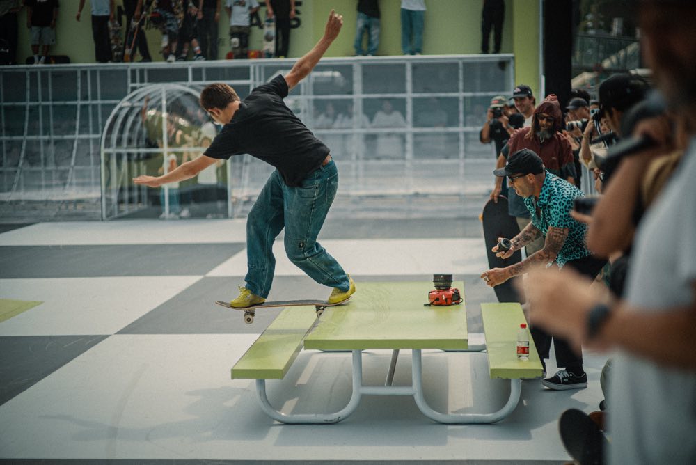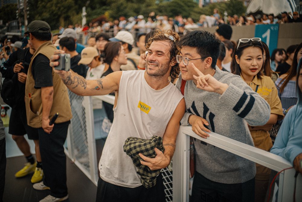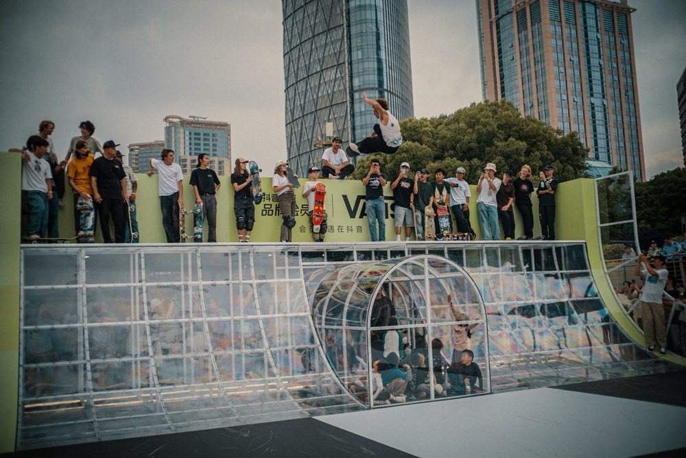 会場にはAVE 2.0完成までのプロセスやAVEのキャリアを祝したギャラリーに加えて特設スケートパークが設置され、コミュニティマーケットやPop Upショップも用意されるという大規模な内容。特設パークではスケートクリニックやVANSの先鋭ライダー陣によるデモが実施。AVE本人はもちろんのこと、トニー・アルヴァ、クリスチャン・ホソイやオマー・ハッサンといったレジェンドをはじめ、カレン・ケープルス、ディエゴ・トッド、ペドロ・デルフィーノにペドロ・バロスが来場。加えてヨーロッパ、オーストラリア、インドネシア、マレーシア、韓国、地元中国のライダーが集結し、日本からは守重琳央、星野大喜、ショー・ウエストが参加。この超豪華なラインナップだけで本イベントのサイズ感がわかっていただけるはず。