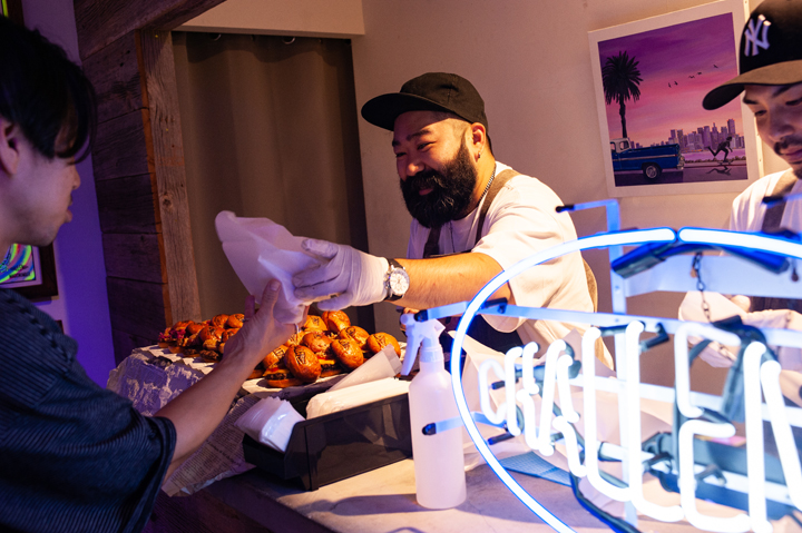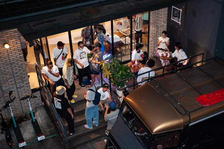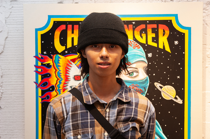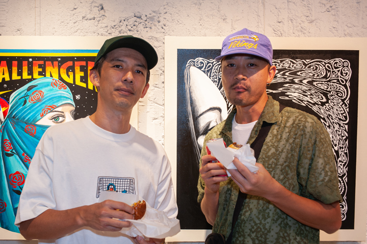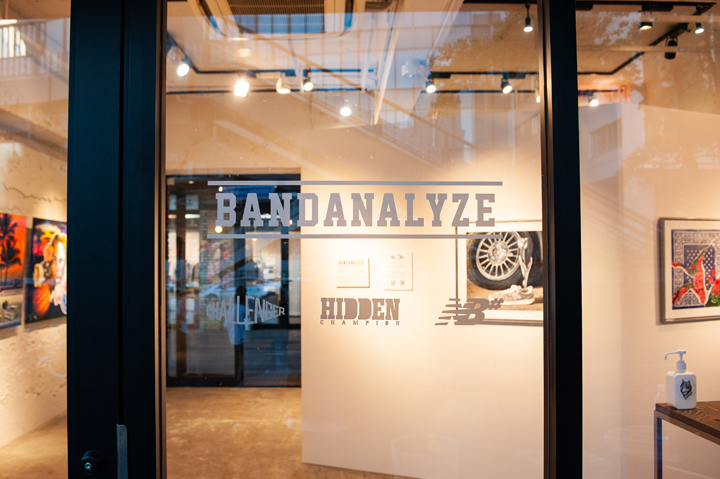 NM440をベースにしたNew Balance Numeric × CHALLENGERによるコラボシューズの発売を記念し、CHALLENGERのデザイナー田口 悟による個展“Bandanalyze”が9月10日に原宿で開催された。会場にはプロモビデオ(www.vhsmag.com/news/nb-x-challenger-collab)で使用されたペインティングのほか、これまで手掛けてきたバンダナの原画が多数展示。当日の夜に行われた関係者向けのパーティにはスケーターや業界関係者が足を運びシューズのリリースを祝福していた。