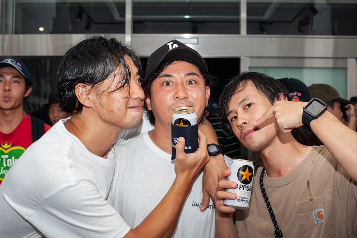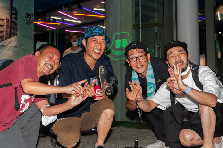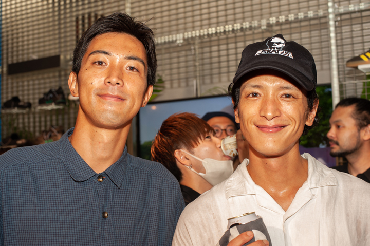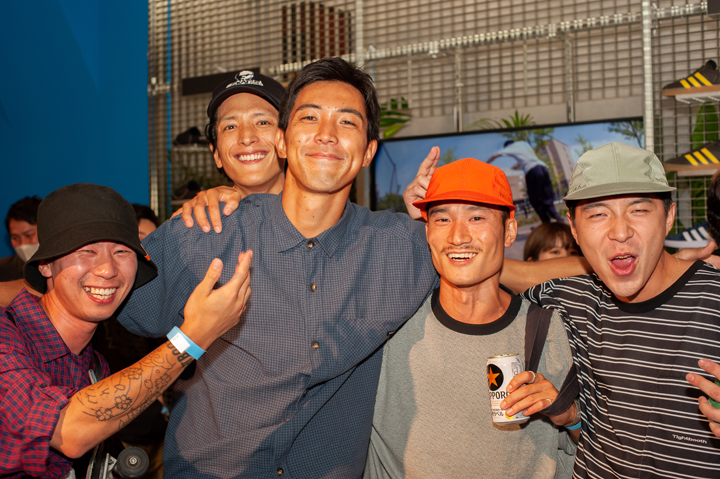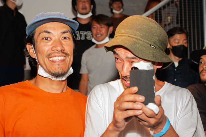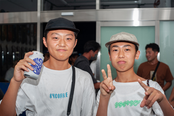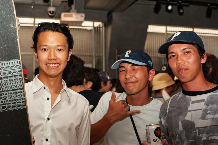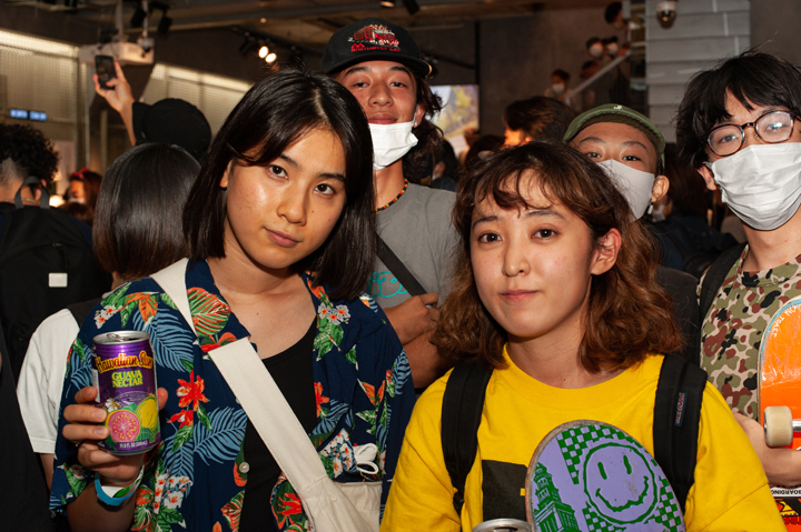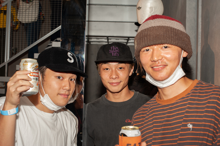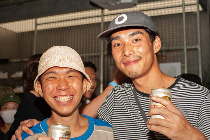 両日とも三本木の晴れ舞台を祝いに多くのスケーターが駆けつけ、ドリンクを片手に終始ハッピーなヴァイブス。
