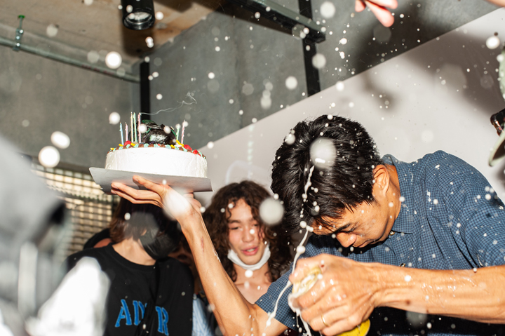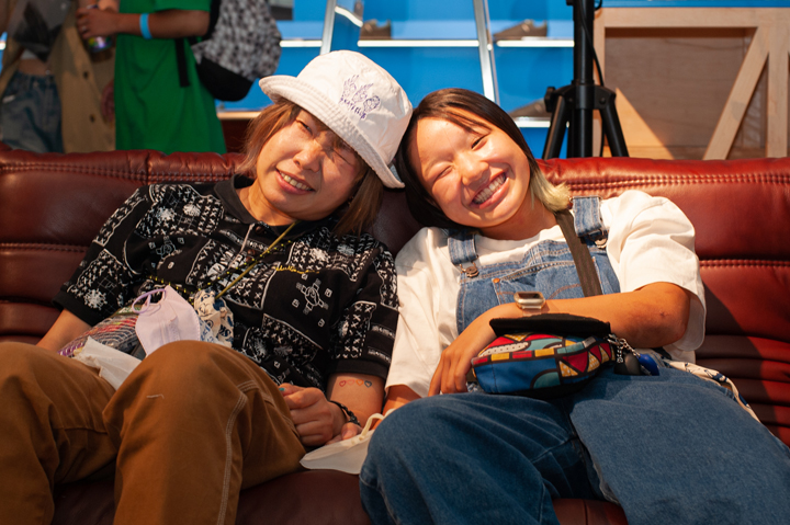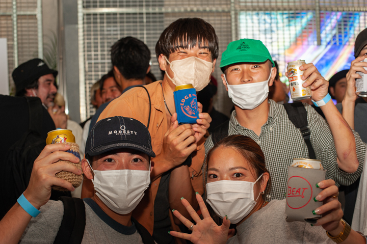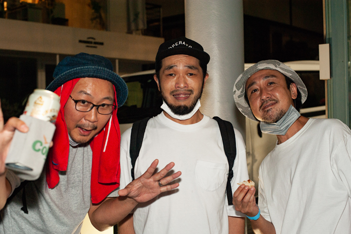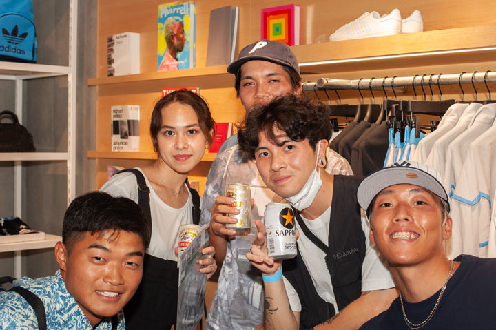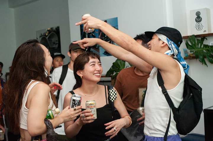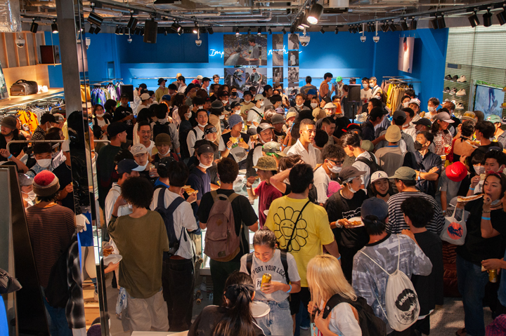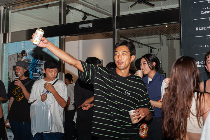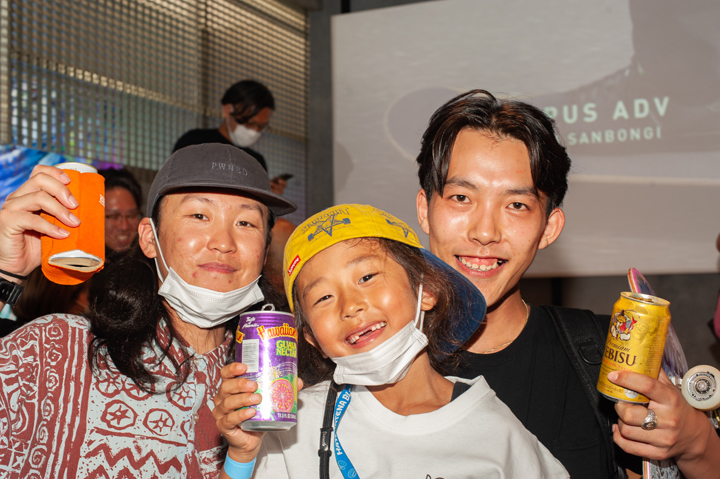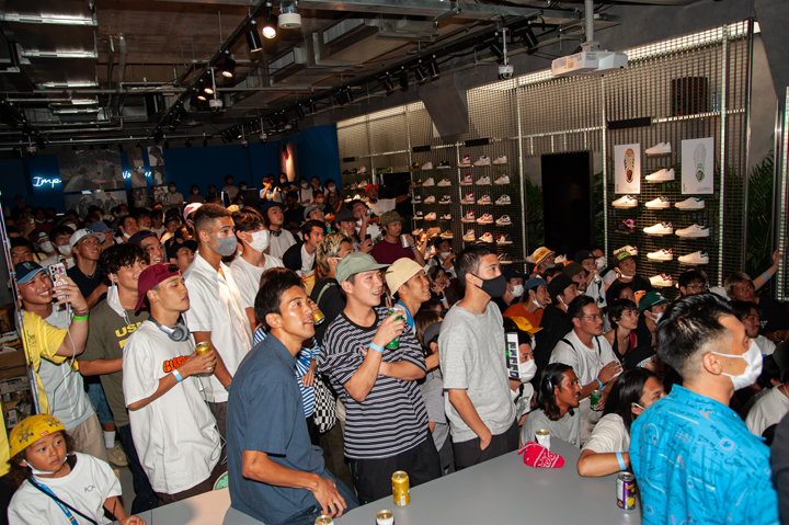 両日とも三本木の晴れ舞台を祝いに多くのスケーターが駆けつけ、ドリンクを片手に終始ハッピーなヴァイブス。