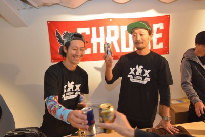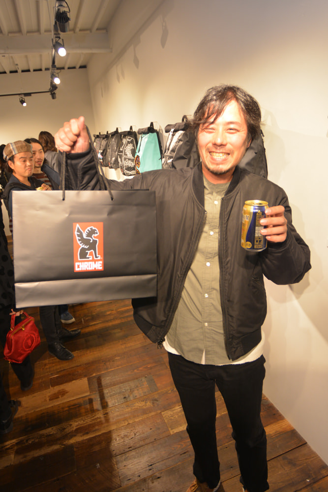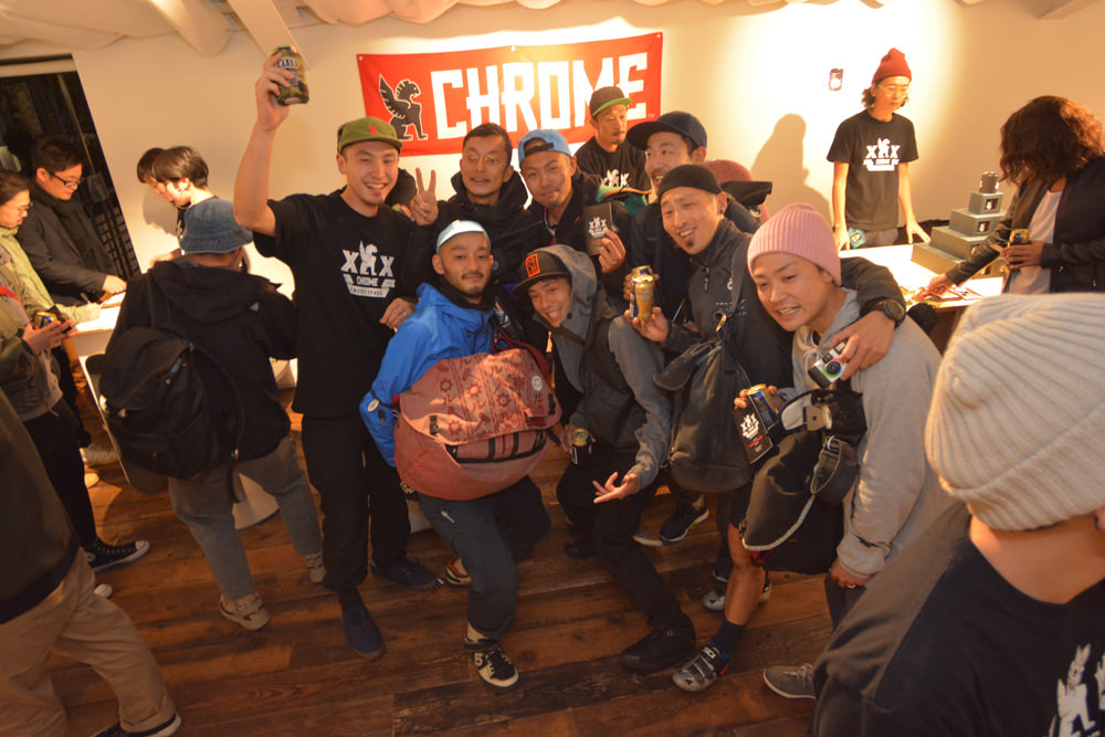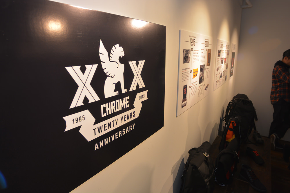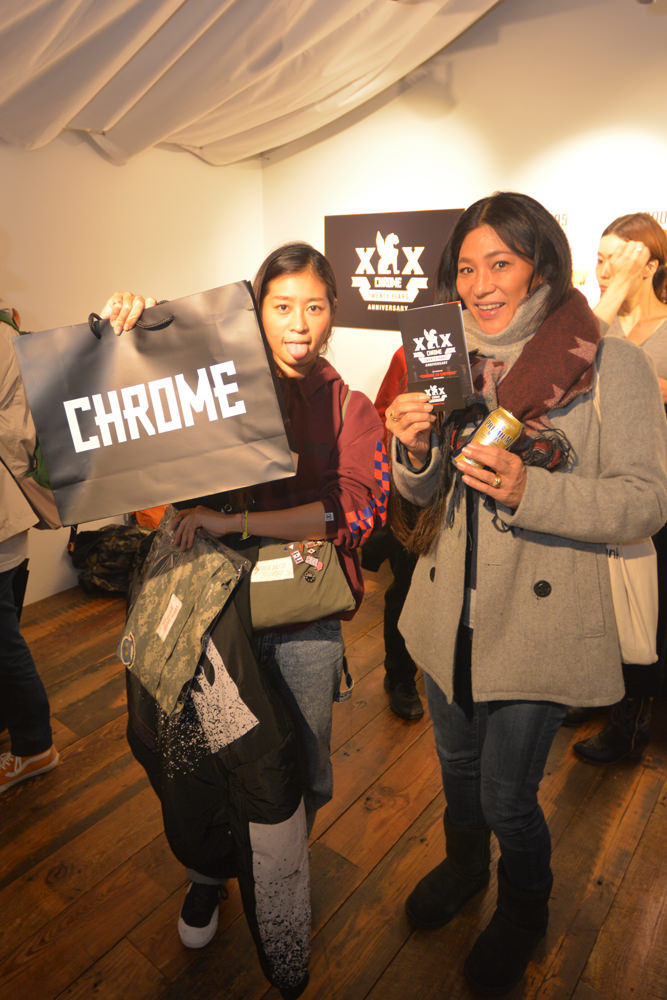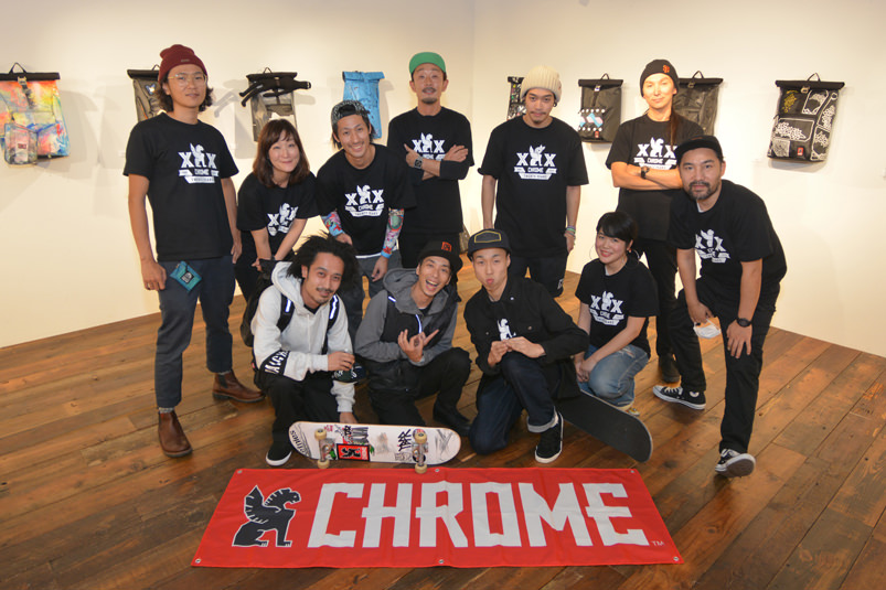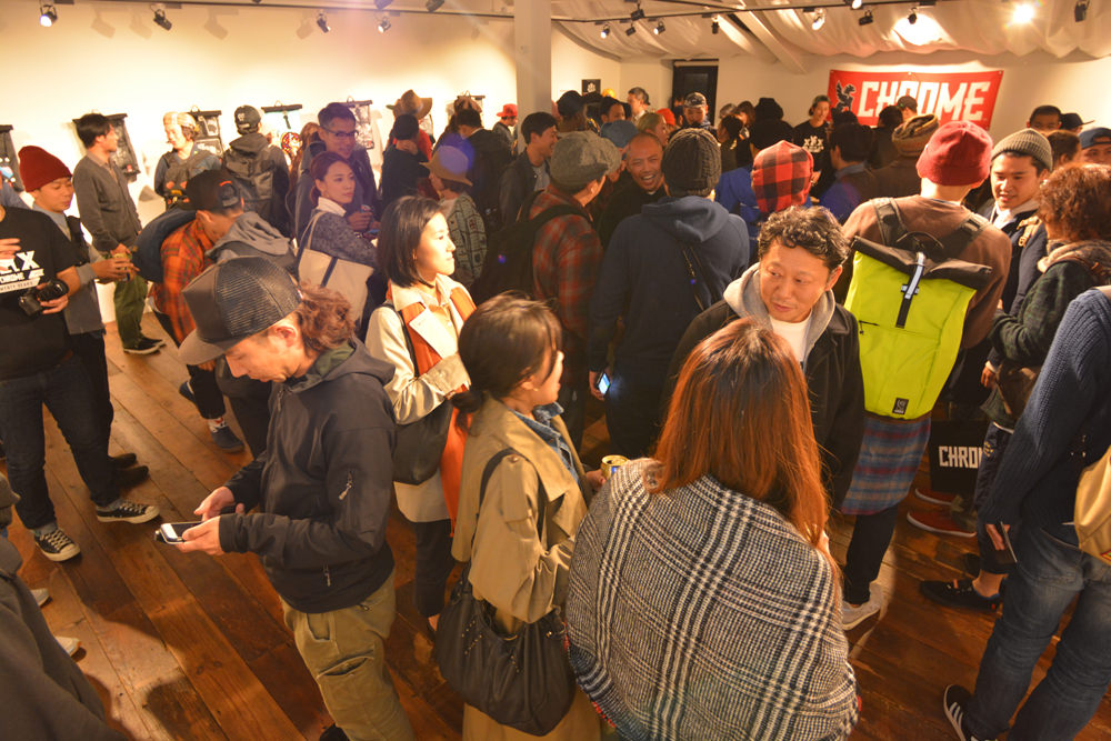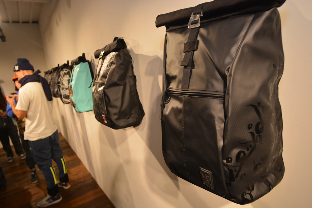 11月20日(金)に、原宿のWAGにてCHROMEのブランド設立20周年を記念したアートエキシビション、“CHROME 20 CUSTOMS”のレセプションパーティが開催された。本エキシビションは、CHROMEを代表するバックパックとして知られるYALTA 2.0をキャンバスにして、20名のアーティストが各々のアートを施すというもの。会場にはアートピースに変身した20点のYALTA 2.0がずらりと並び、CHROMEファンがドリンクを片手に各アーティストの世界観を堪能していた。