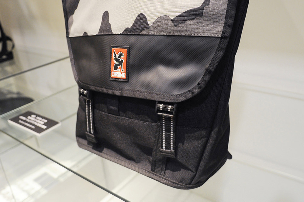 XLARGE® HARAJUKUの1Fにはコラボバッグを初めとしたCHROMEのアイテムや写真が展示され、コアなユーザーに愛用されるCHROMEの世界観を演出していた。