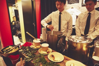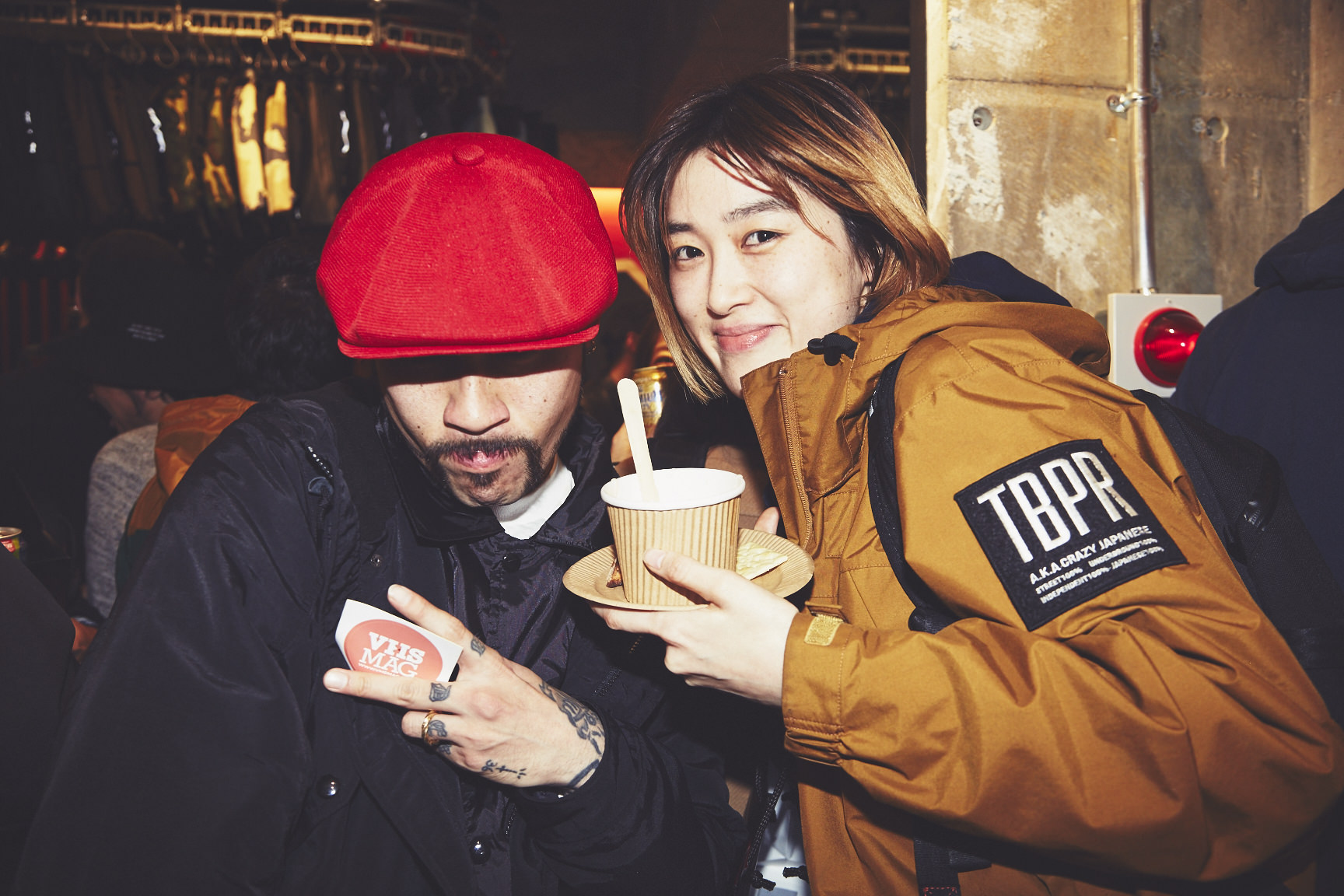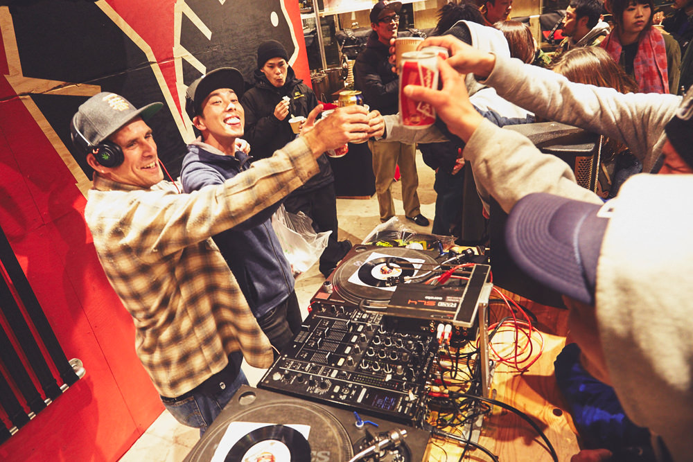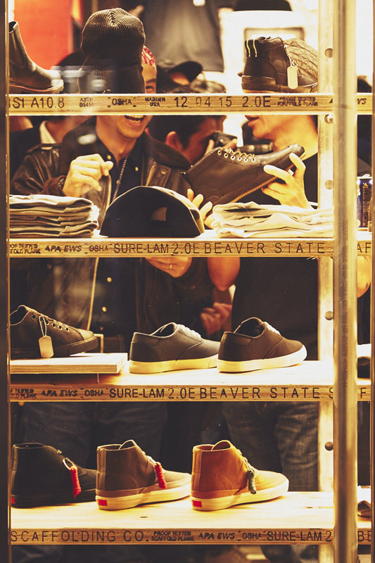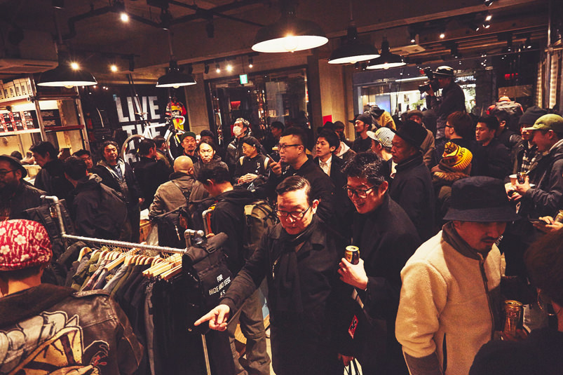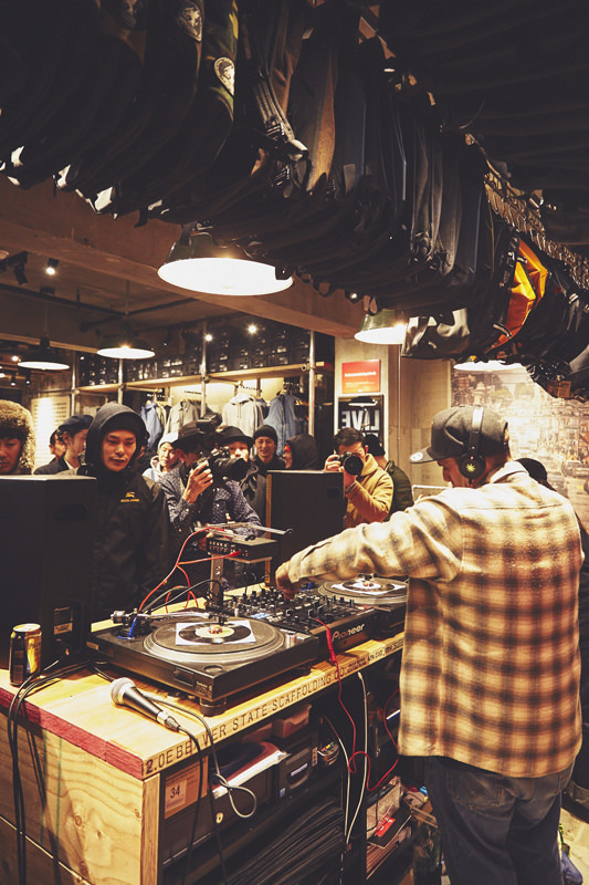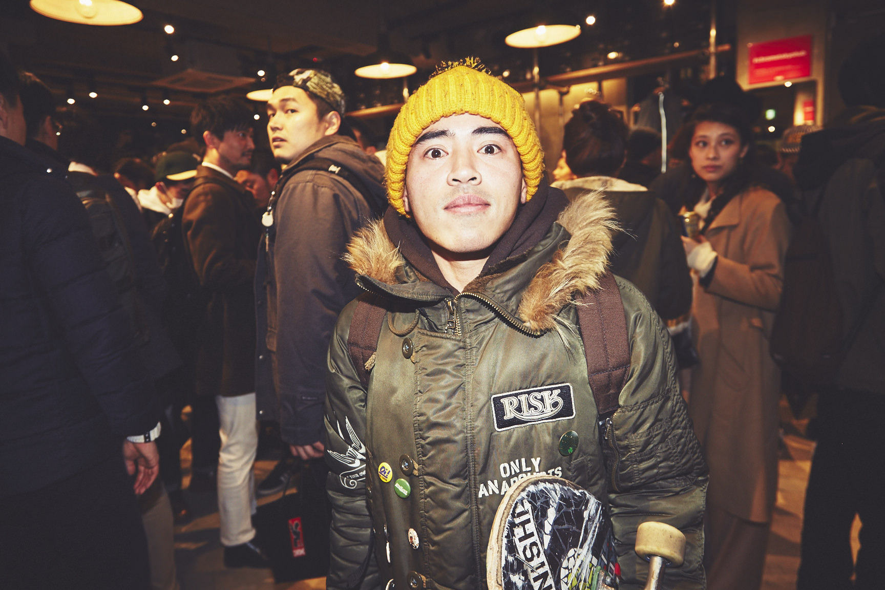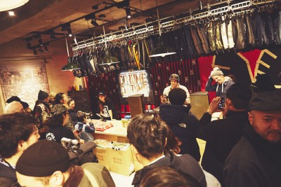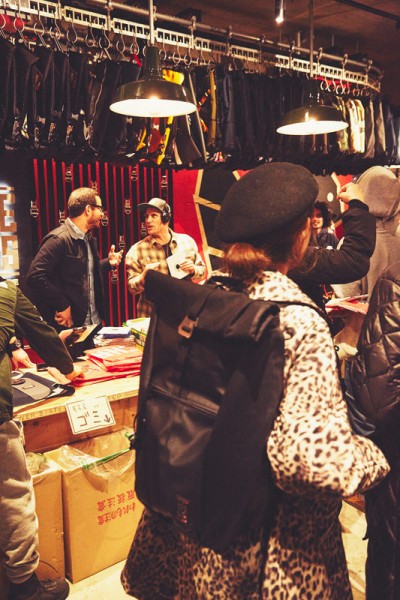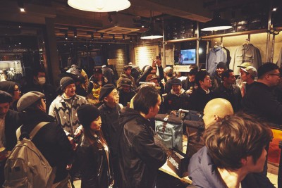 当日は関係者のみのレセプションでありながら(翌29日は一般向けのレセプション)、会場である店内は多くの来場者で溢れ、今パーティのために駆けつけたCHROME FAMILIAのジョン・カーディエルのDJを聴き入っていた。