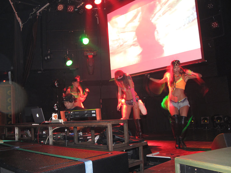 会場に入ると、DGKとつながりの深いRuff NeckのDJ AkioによるDJプレイでGo Go Dancerの3人によるセクシーダンスでフロアを盛り上げる。