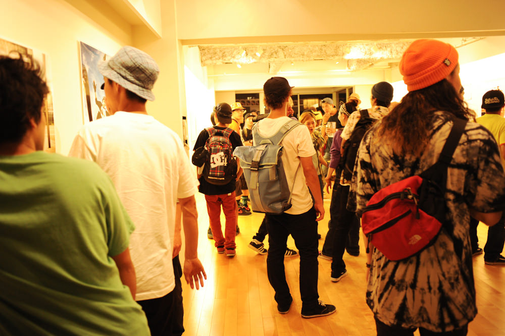 Isssue No. 10に掲載された写真を展示したフォトエキシビジョンでは、表紙を飾った池田幸太や特集を行った粂田憲ニをはじめ、大阪はもちろん県外からも多くのスケーターが集結。普段スケートの写真をあまり見たことがないカルチャー好きの人々も多く来場。カメラマンやライダーたちとともに、写真についての話や普段聞けない撮影の裏話をするなど盛り上がっていた。