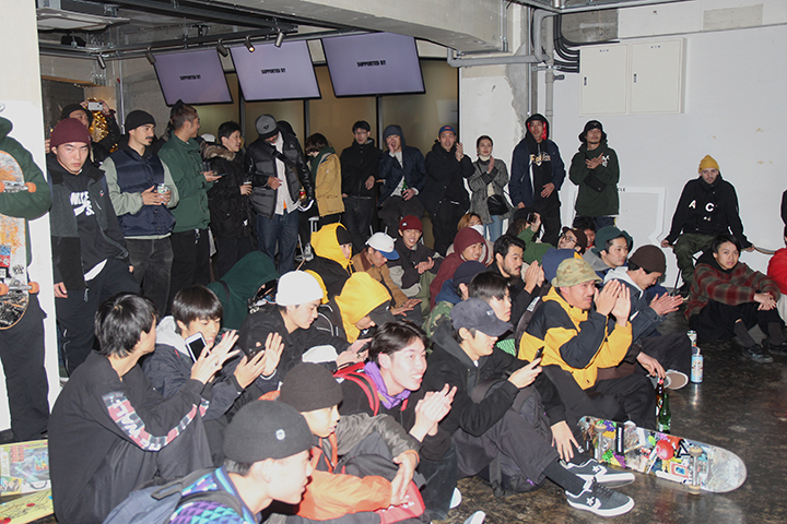 12月21日(土)にDCプレゼンツによる試写会イベントGang Bangが渋谷のDAZN Circleにて開催。今回のラインナップは『Sketchy Life 2』に佐々木真那のウェルカムパート、そして根岸 空のフルパート。スポーツ専門の動画配信サービスDAZNが手掛けるスポーツバーが会場とあって、店内にあるふたつのプロジェクターと8つの液晶モニターで作品を上映。多くの来場スケーターがそれぞれのモニターで映像を楽しんでいた。