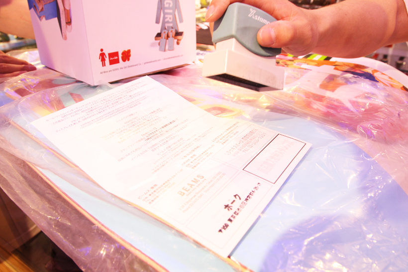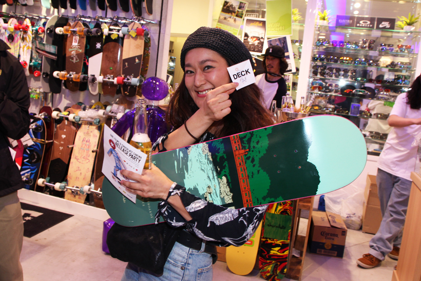 今イベントではビームス原宿、Hawk原宿、ムラサキスポーツ原宿明治通り店の3会場を巡るスタンプラリーを実施。3会場のスタンプや対象商品を購入するとそれぞれ1回ずつ抽選に参加することができ、デッキを始めとした商品がプレゼントされるというもの。