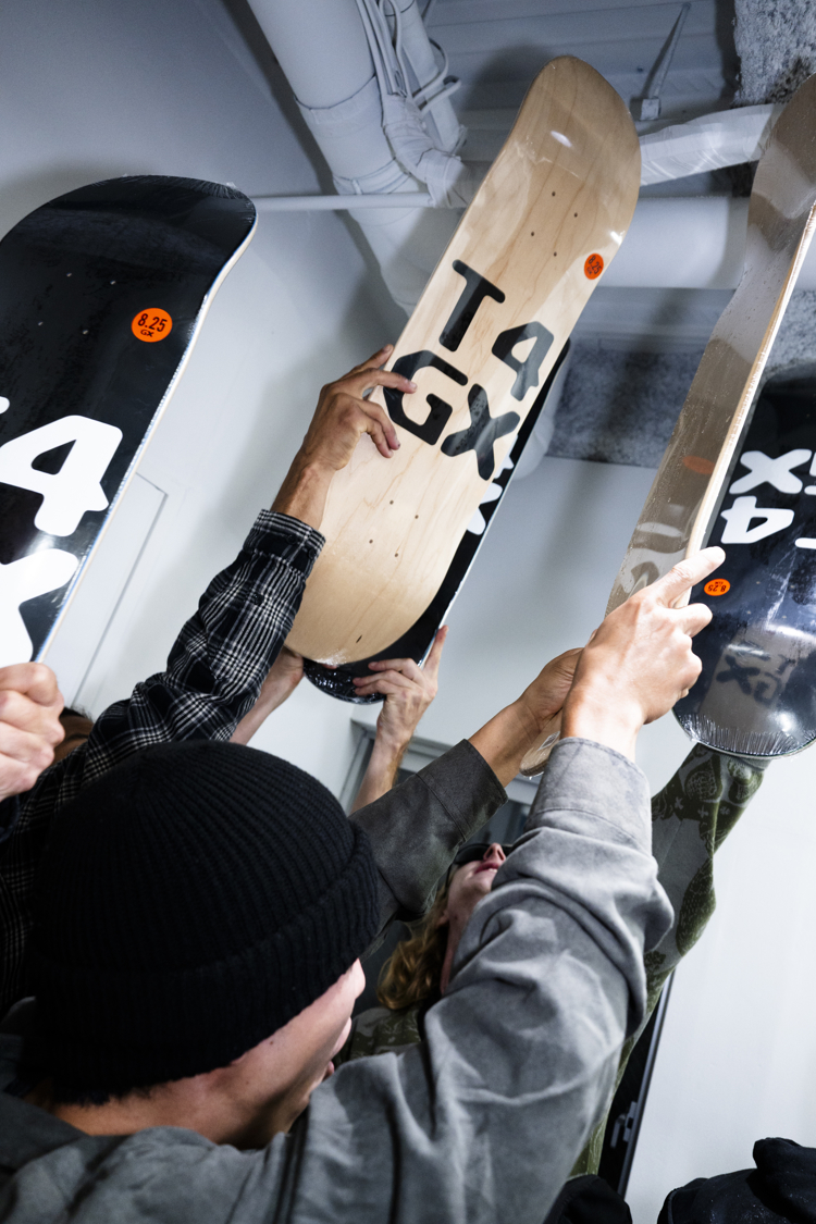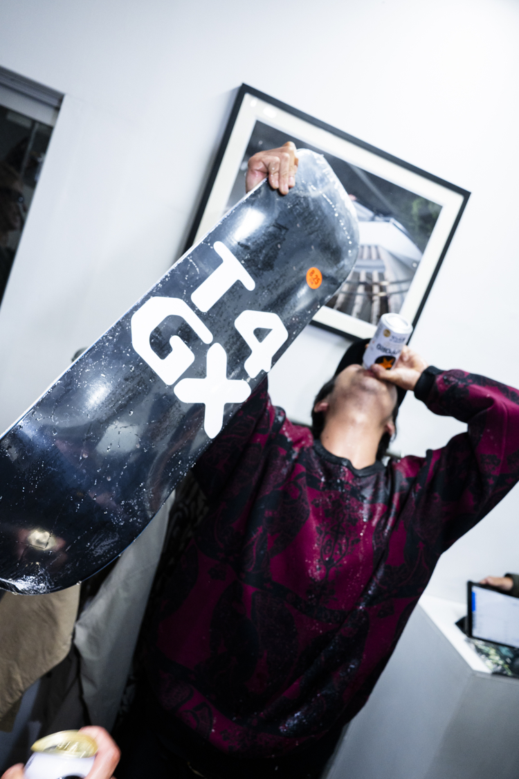 会場ではGX1000を撮影した林 航平の写真が展示されたほか、ジンに加えGX1000のデッキやアパレルの販売を実施。