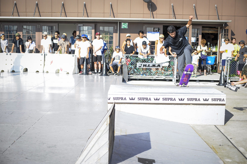 1回戦の組み合わせはライダーによるくじ引きで行われ、初戦から瀬尻 稜 VS 三本木 心、牧野雄太 VS 砂川元気、高山零央 VS 池田大亮、池 慧野巨 VS 米坂淳之介といった好カードで幕が上がる。続く2回戦、準決勝でも森中一誠 VS 砂川元気、佐川海斗 VS 池田大亮、伊藤慎一 VS 池 慧野巨などといった名勝負が実現し、デッドヒートを勝ち進んで決勝に進出したのは砂川元気、池田大亮、山城正隆の3名。スケートスタイルの異なる3名が死力を尽くした(結果)ファイナルを見事制したのは若手注目株の池田大亮。決勝戦の後には、会場のH.L.N.Aスケートパークのメインセクションを用いた参加自由のベストトリックコンテストが行われ、メインとスイッチスタンスを使い分けてビッグトリックをメイクした瀬尻 稜がウィナーに。