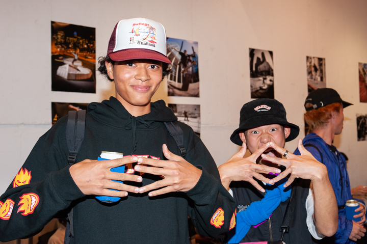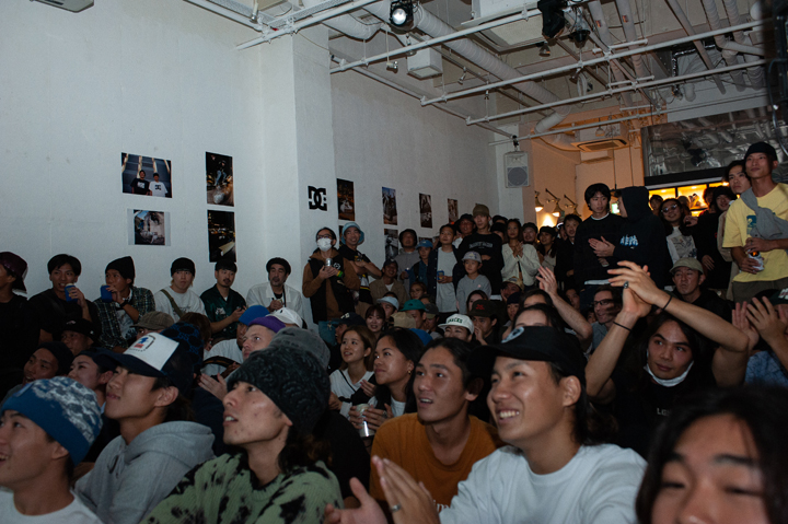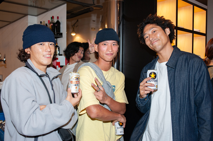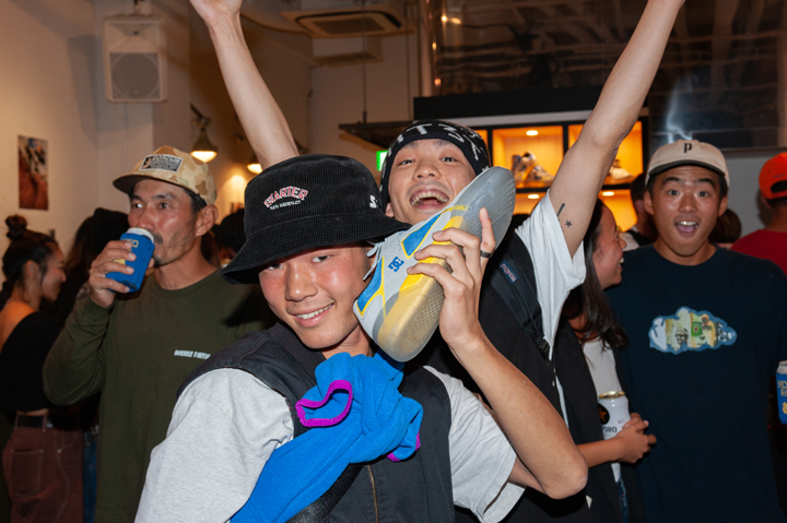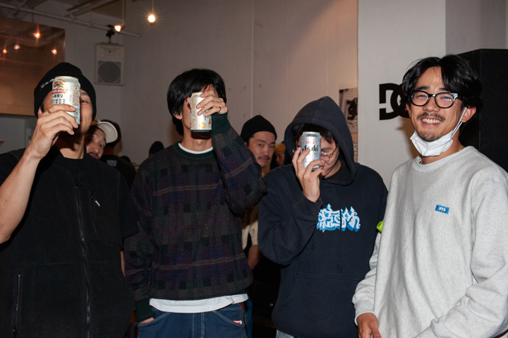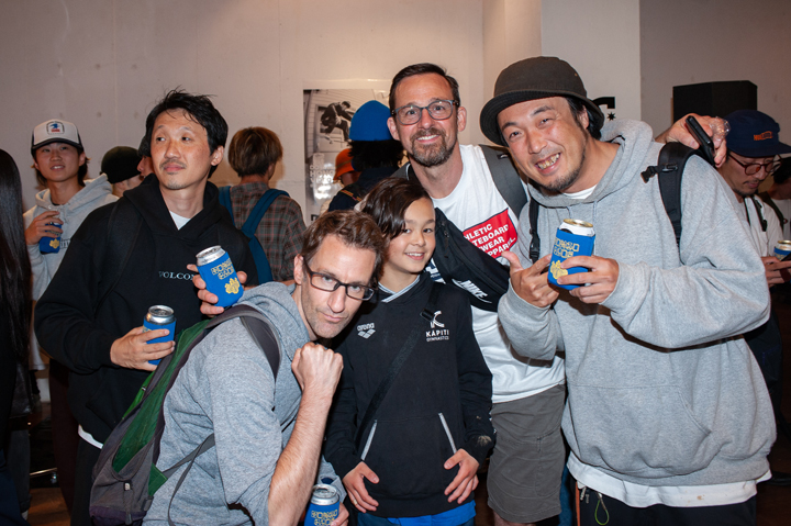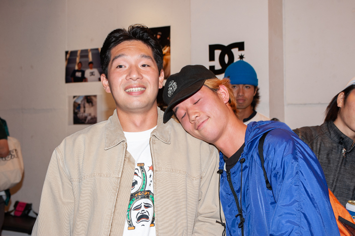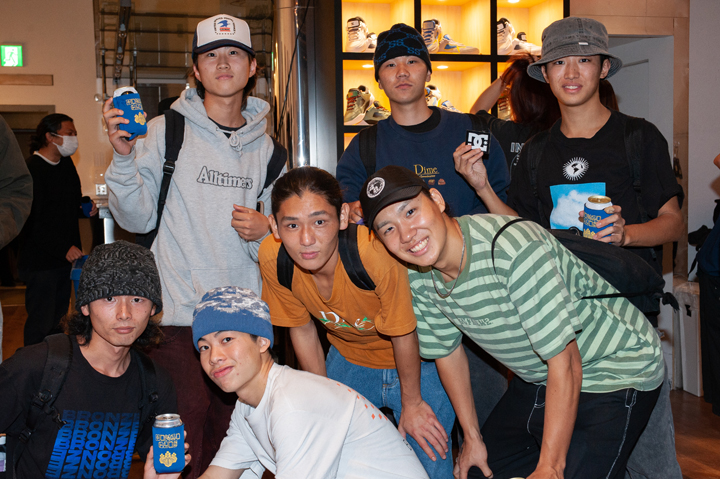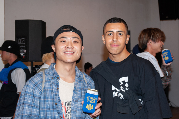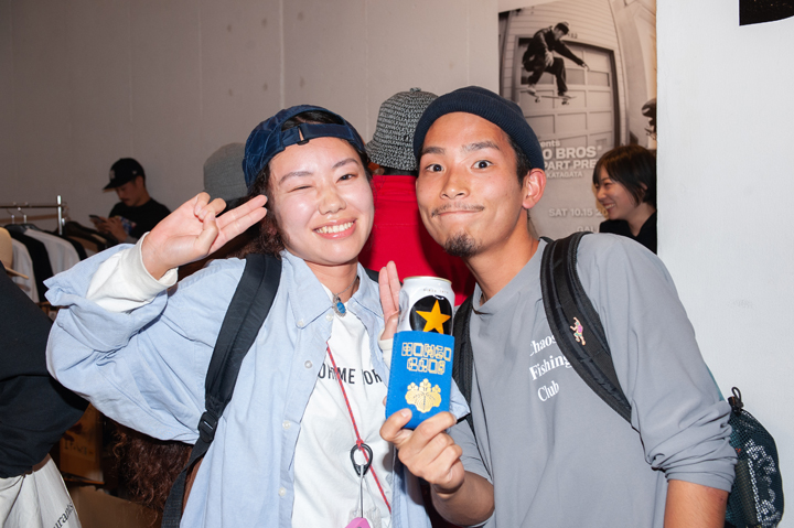 会場にはSFで撮影されたふたりの写真が展示されたほか、DJ Haruka KatagataのセットやItanjiによるシルクスクリーンに加え、この日のために限定生産されたHongo Brosクージーが配布された。肝心のパートも終始歓声が上がるほどの盛り上がり。