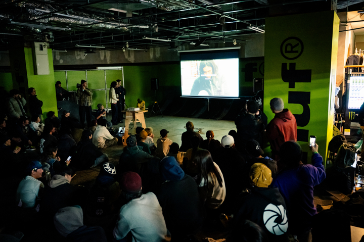 当日は上映に加えベストトリックコンテストが行われるというだけあって、多くのスケーターが駆けつけ熱気あふれるイベントとなった。