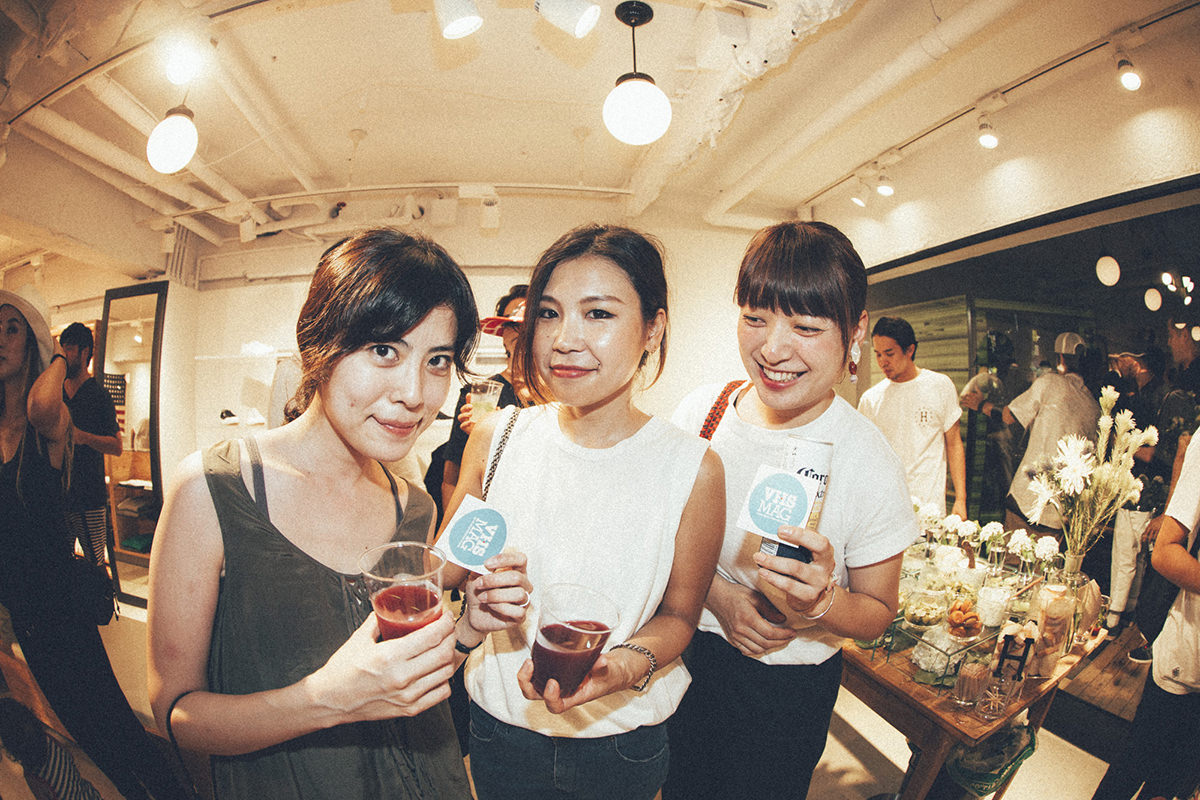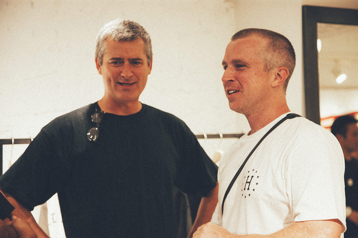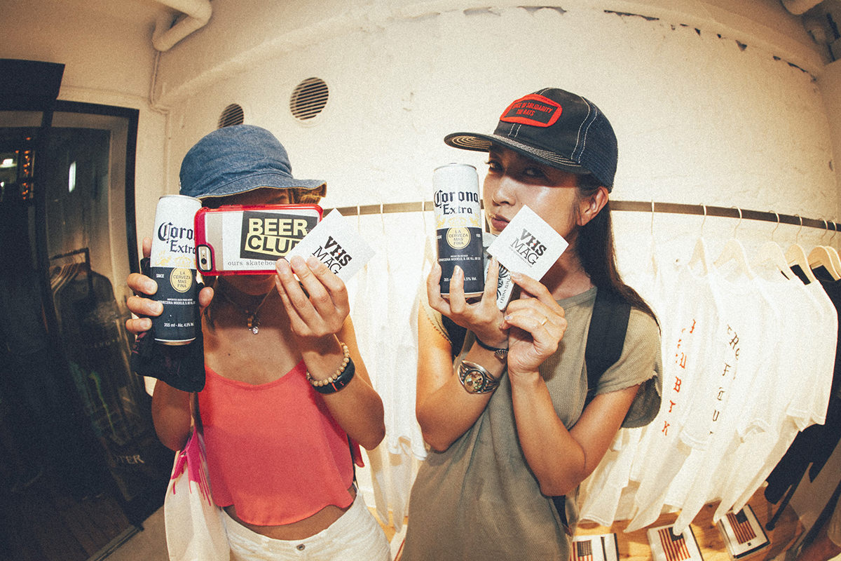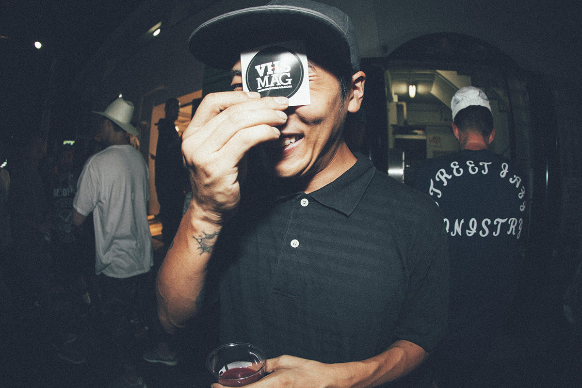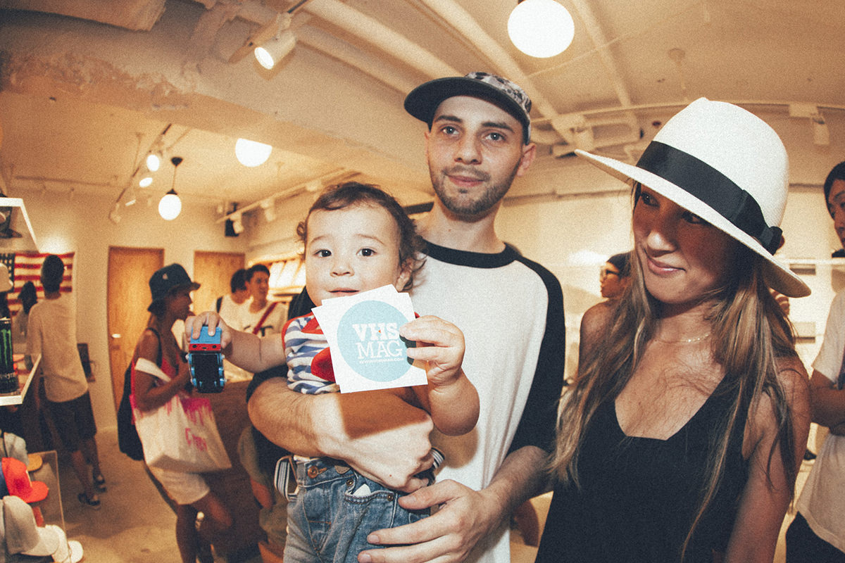 7月31日(金)にはHUF TOKYOのオープンを翌日に控え、オープニングレセプションが開催。当日はLAのHUFヘッドクオーターよりブランドディレクターであるキース・ハフナゲルと、HUF TOKYOのアートワークとしてヴィンテージフラッグを手掛けたLA在住のアーティスト、カリ・ソーンヒル・デウィットが来場。会場は多くの来場者で賑わい、それぞれがDJプレイ、フリードリンクとフリーフードを楽しみながら大盛り上がり。また店頭にはベンディングマシーンが設置され、来場者にHUFのソックスがプレゼントされたりと豪華な一夜となった。