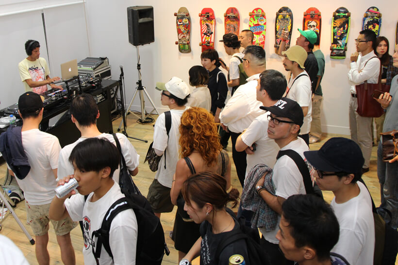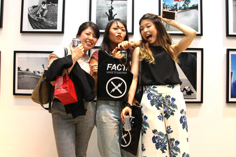 ’80〜’90年代のスケートカルチャーをモチーフに展開するアパレルブランド、FACT.のローンチイベントのレセプションパーティが6月23日(金)に原宿のBA-TSU Art Galleryで開催された。当日は会場の壁に貴重すぎる'80年代のスケートボードがずらりと並び、FACT. × ArkitipとのコラボTシャツに作品を提供したフォトグラファーのグラント・ブリテンも来日して当時のスケートフォトの展示・販売を実施。さらにはDJにBeastie BoysのMike Dを迎え、FACT.を手がけるデーモン・ウェイ(ダニー・ウェイの兄)も来場。ご機嫌な音を聴きながら、ドリンクを片手にスケート史に残る重要なアイテムや瞬間を振り返ることができた素晴らしいイベントとなった。