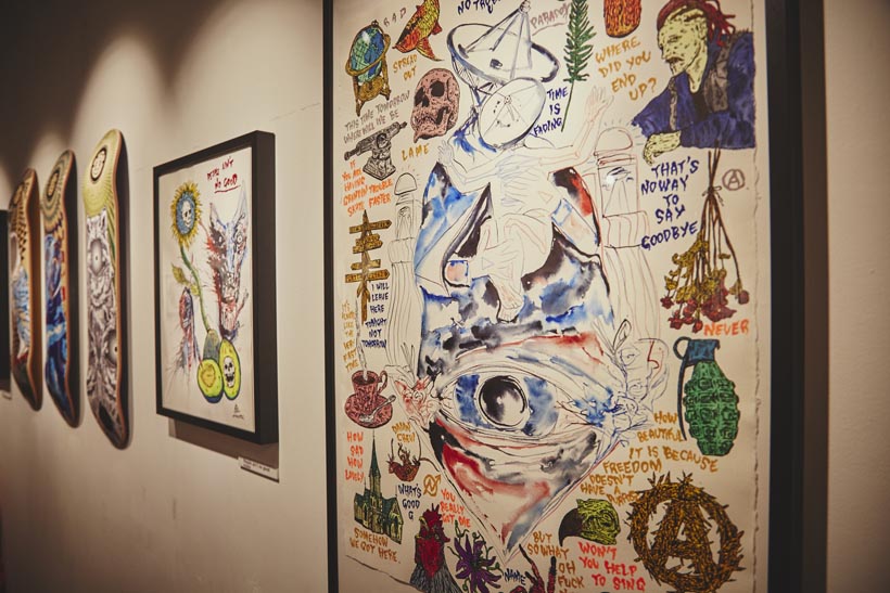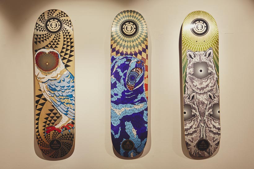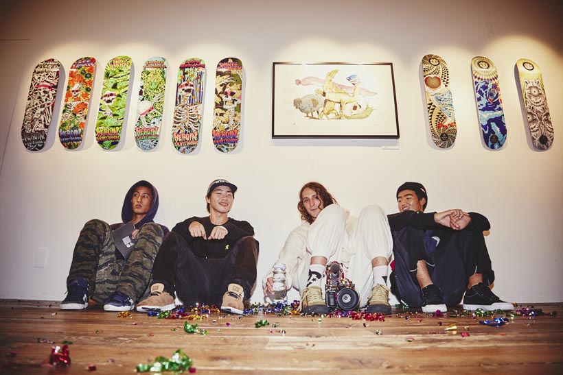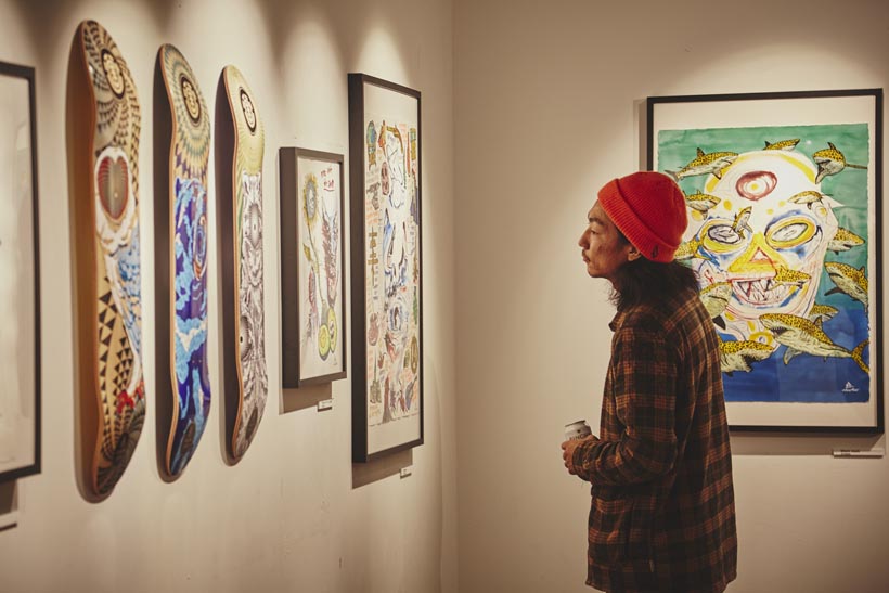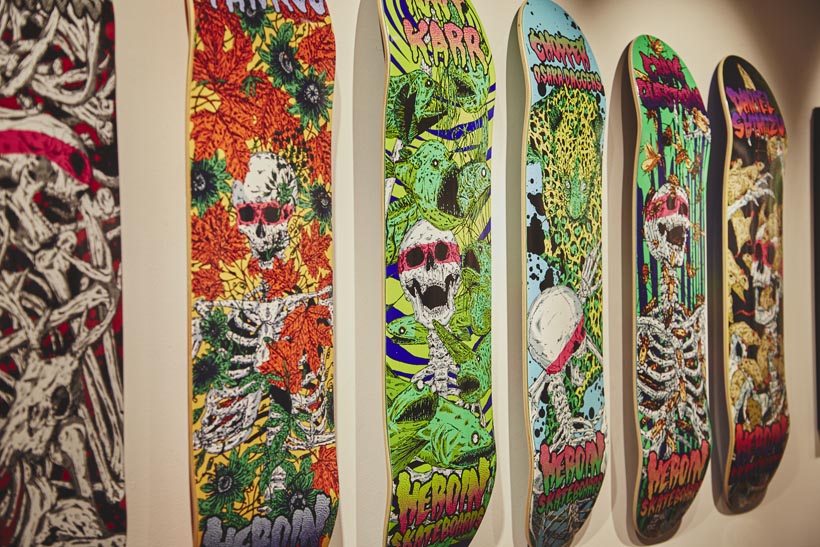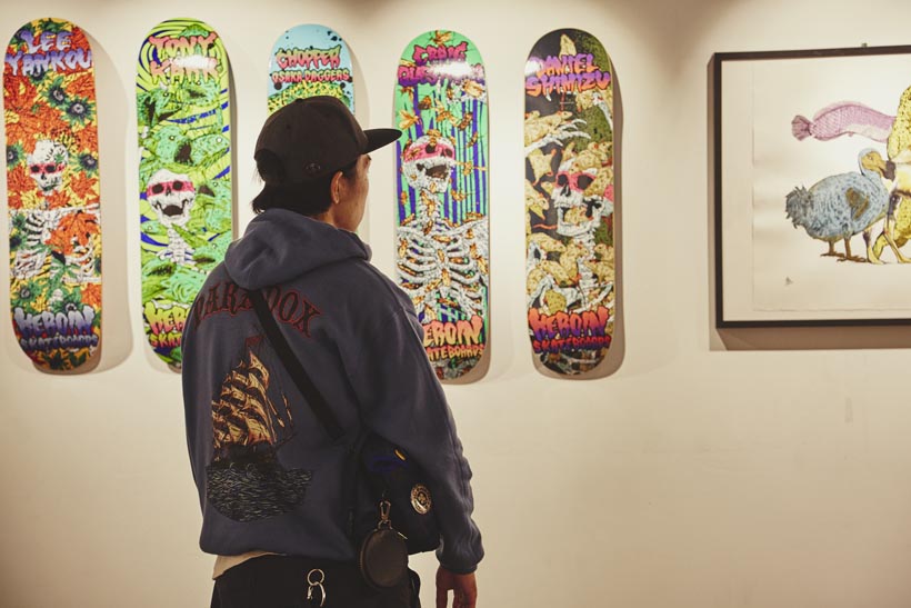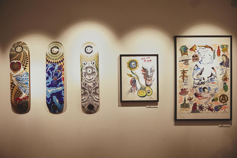 本アートショーではバスティダスとHirottonがタッグを組み完成させた作品群、そしてそれぞれがボードグラフィックを手がけたHeroinとElementのデッキが展示。