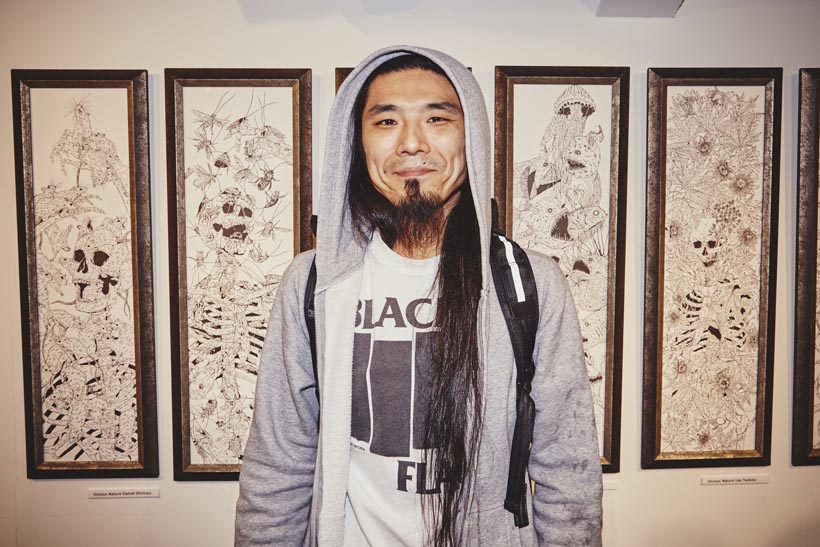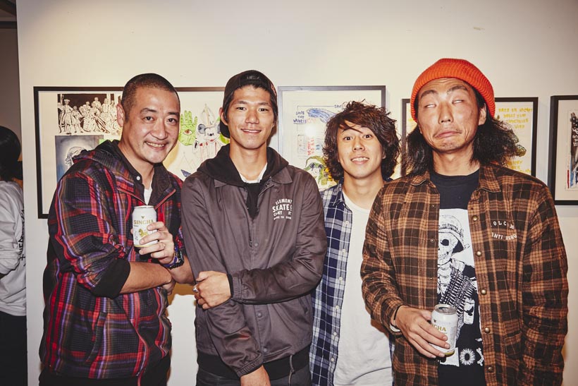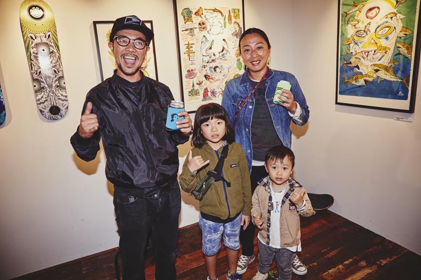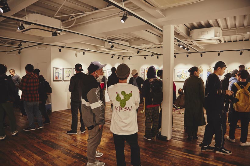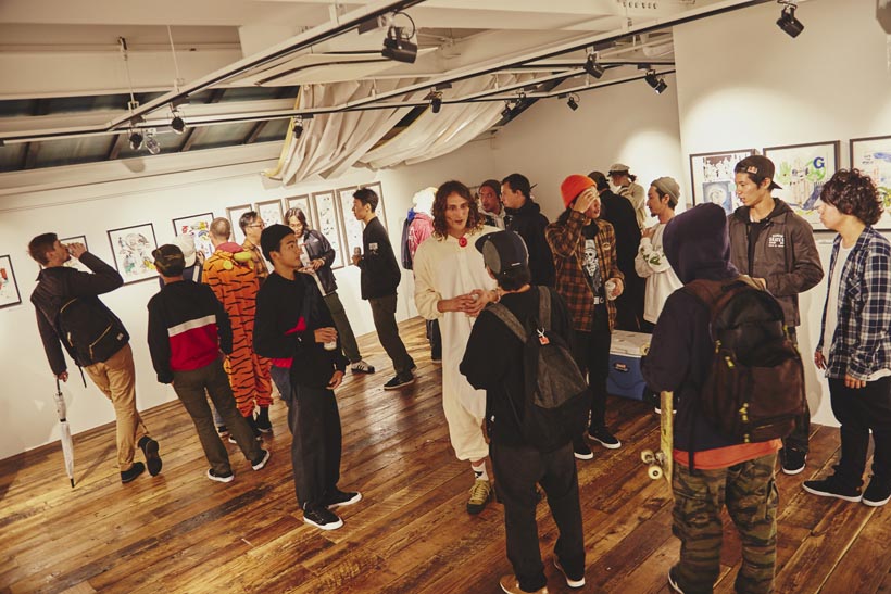 大雨という悪天候ながらもスケーターやアート好きが集まり、ビールを片手にアートの世界を堪能していた。