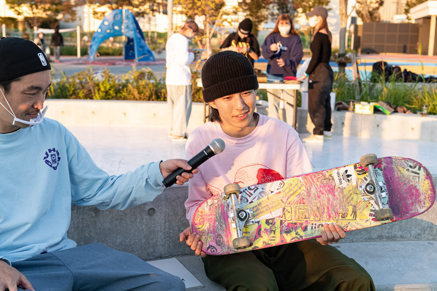 当日はガールスケーター陣によるグリップテープのカスタムアレンジ、有名スケーターのセットアップ拝見、ハイオーリーやBESTトリックコンテスト、さらには視聴者参加型の抽選会など盛りだくさんな内容。