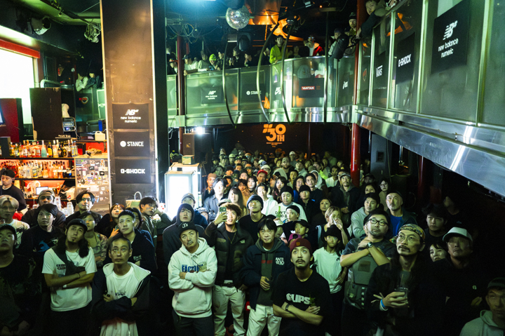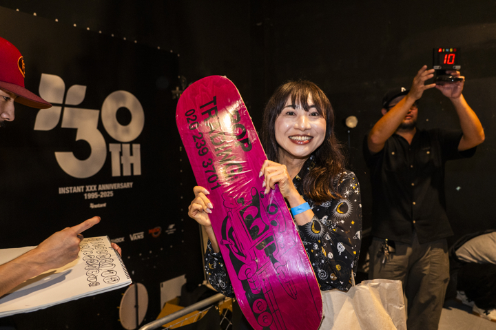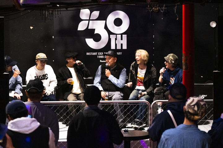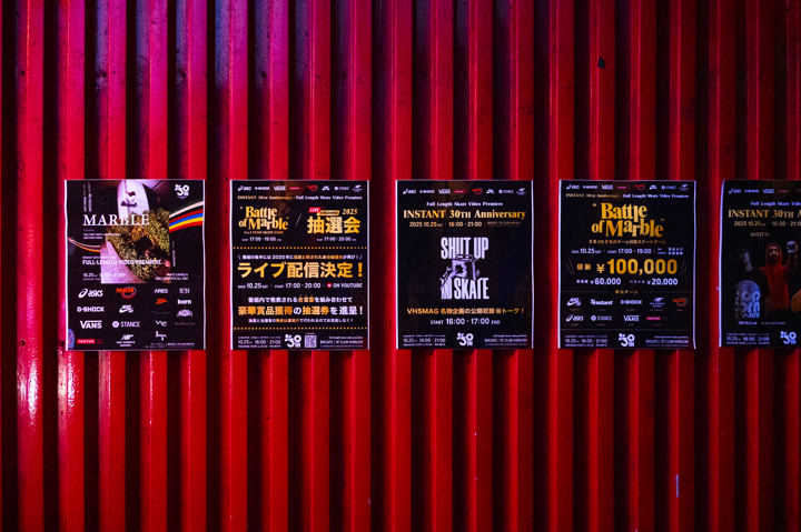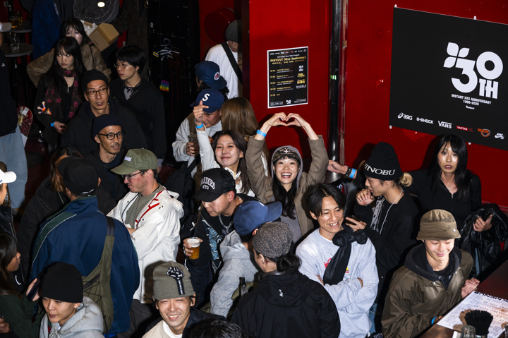 instantの30周年記念イベントが10月26日に渋谷・Harlemで開催された。世代を超えたゲストを迎えて行われたShut Up & Skateの公開収録を皮切りに、スケートゲーム、ビンゴ大会、そして最新ビデオ『MARBLE』の上映など盛りだくさんな内容。来場者は遊び心とコミュニティのつながりを感じられる時間を共有。会場は終始温かくもエネルギッシュな空気に包まれた。次の世代へとスケートの楽しさと文化をつなげていくinstantの姿勢を象徴するかのように、笑顔と感謝で満ちた一夜となった。