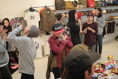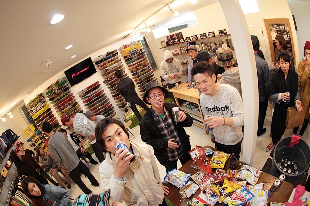 千葉駅ほど近くの通称「ナンパ通り」にスケートボード専門店インスタント千葉ストアがオープン。4月3日(金)に開催されたオープニングレセプションでは、ローカルスケーターだけでなく、西東京や神奈川、埼玉や茨城などの近県からもスケート好きが駆けつけ大盛り上がり。ショップでは、発売を間近に控えたLesqueの新作『Que』のプレミアもあり、スケートボーダー恒例のドンチャン騒ぎが繰り広げられた。