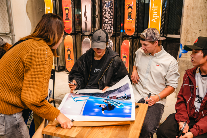 岸 海の最新パート“On The Rise”の試写会とAprilチームのサイン会がMortarにて行われた。