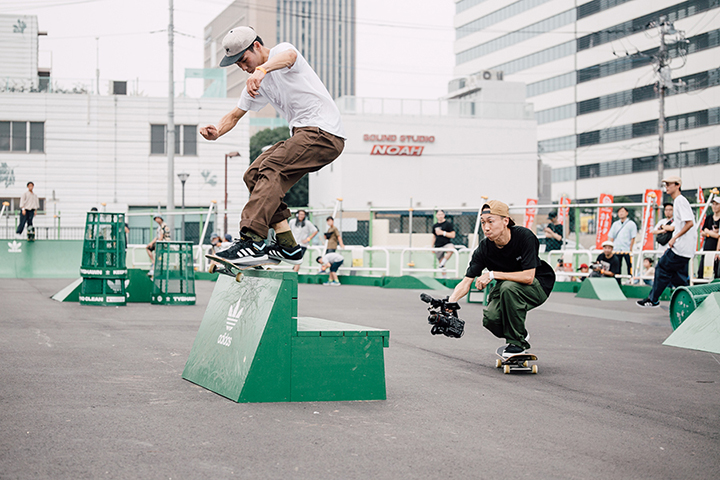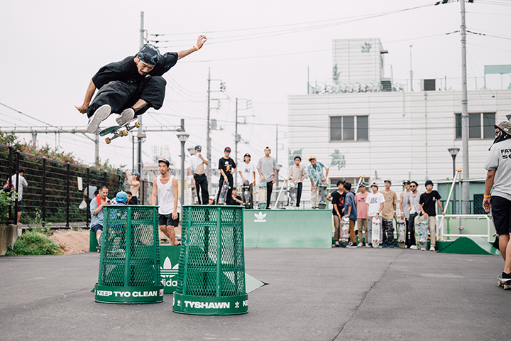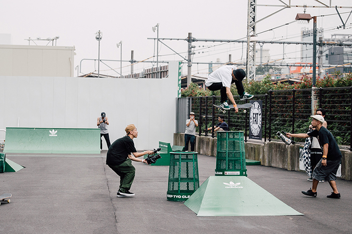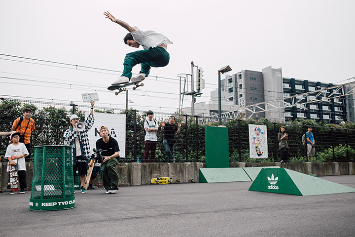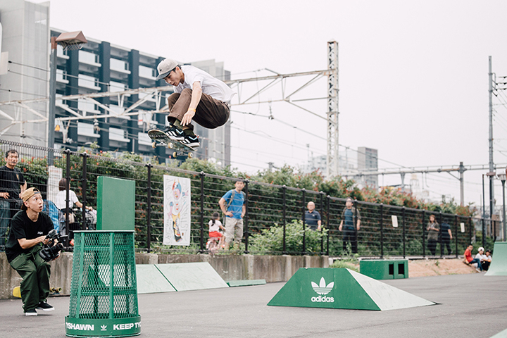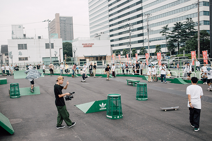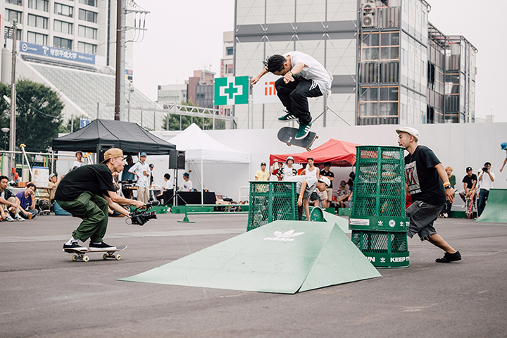 今イベントは中野駅前に新しくできたパークのこけら落としも兼ねたもの。当日はadidas Skateboardingのジャパンチームが集合し、特設セクションを用いたジャムセッションやオーリーコンテストなどが行われ、大いに盛り上がりを見せていた。