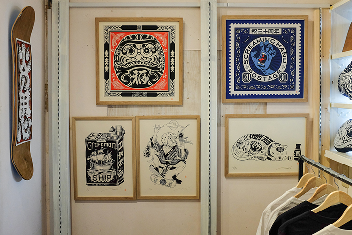 Santa CruzやOJに提供した作品を中心に数々の原画や作品を展示。