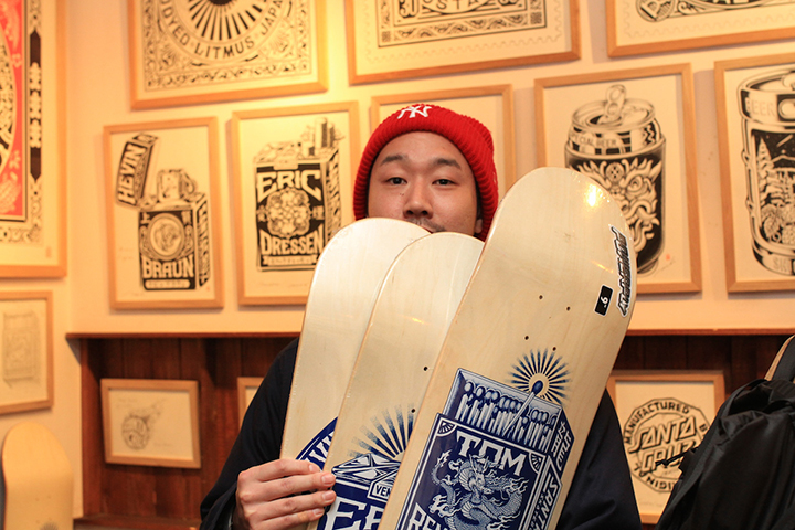 千葉・柏のBatsu Skateboard Shopにて1月24〜27日にかけて山木 真の原画展が行われた。