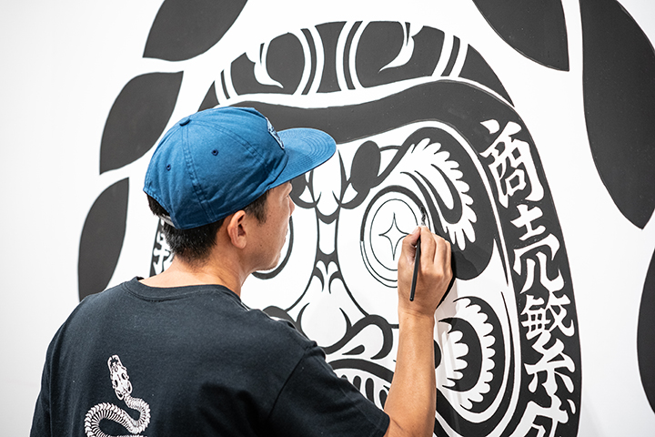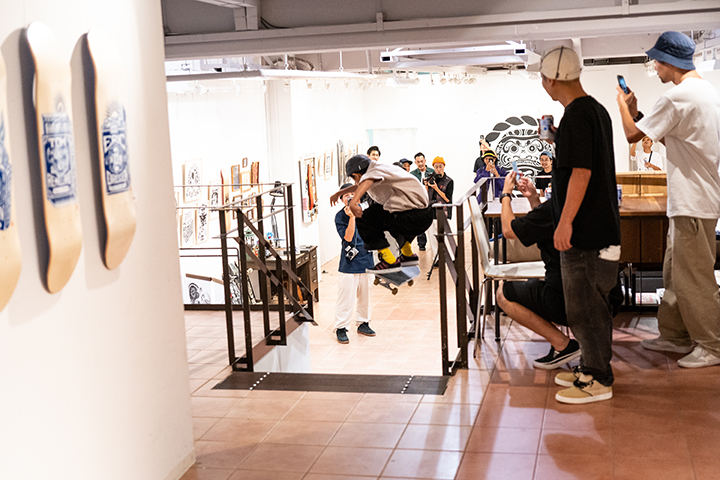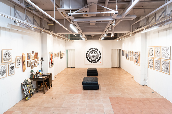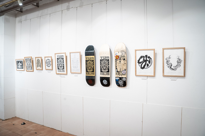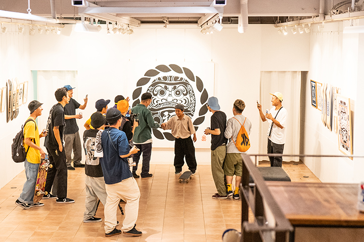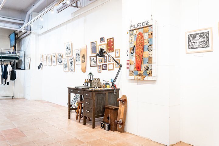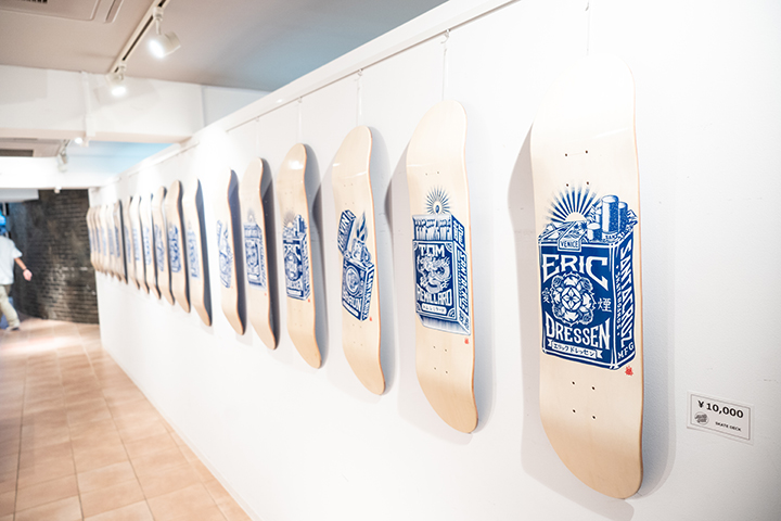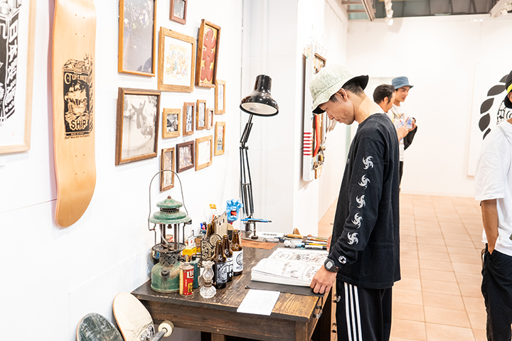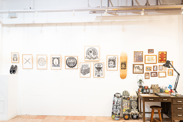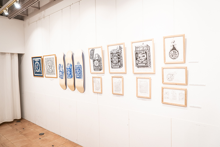 Santa CruzやOJ Wheelsに作品提供した山木 真のアートショーが大阪・心斎橋Calm Spaceで開催された。