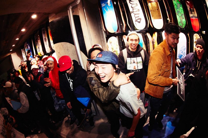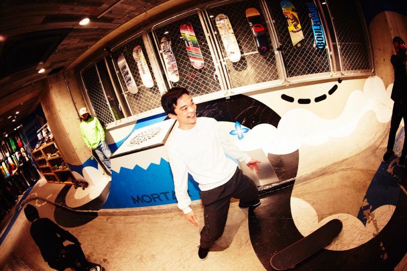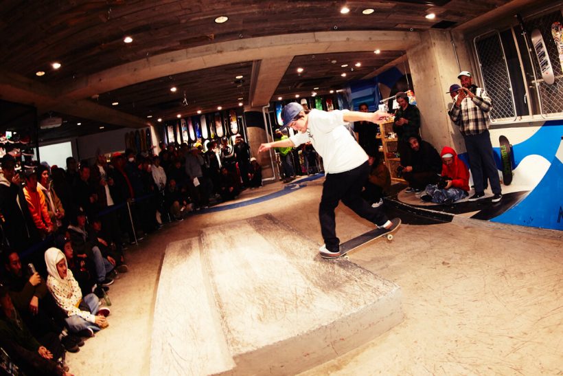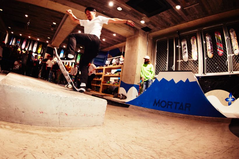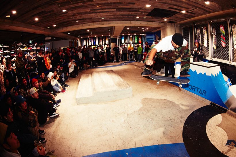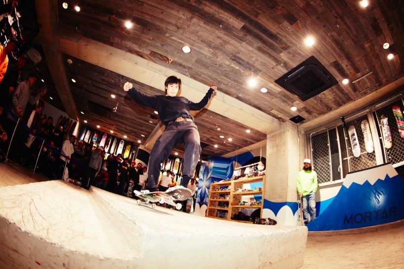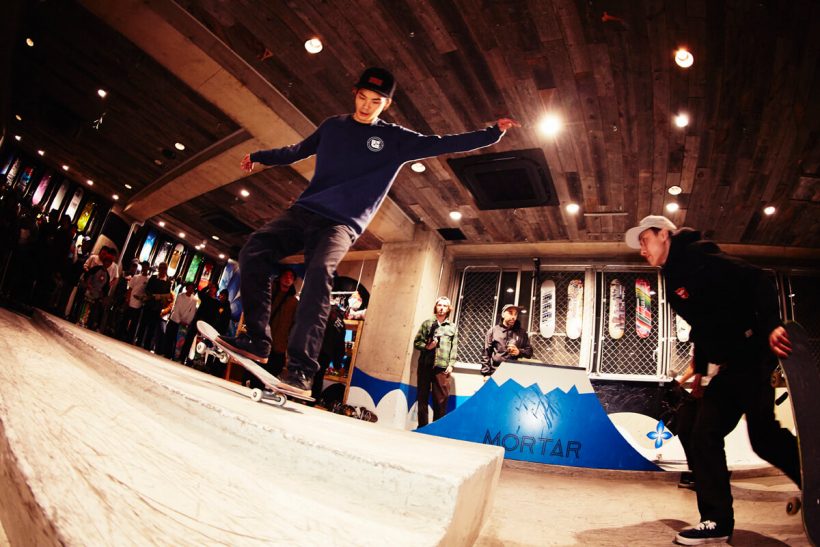 2月15日(水)に、渋谷のMortarにてDC主催のコンテスト“Mortar Kombat”が開催された。本コンテストはMortar店内のセクションを使用し、ジャムセッション形式でスキルを競うというもの。当日はジャパンツアー中のBoulevardチームも来場。ティアゴ・レモス、砂川元気、高橋一慶、玉城和明、内藤寛人、星野大喜、村岡洋樹、本橋 瞭、山城正隆、吉岡賢人の選抜メンバー10名で白熱したバトルが繰り広げられた。会場には溢れんばかりの観客が駆けつけカオス状態となり、なかなかバトルがスタートできないという場面も。そんな中、ファイナルへと駒を進めたのは、砂川元気、高橋一慶、本橋 瞭、吉岡賢人の4名。各ファイナリストが持ち前のトリックを披露しオーディエンスの熱気はマックスに。ジャッジ泣かせの甲乙つけがたいバトルの結果、難易度の高いトリックを連発した本橋 瞭が優勝賞金10万円を獲得。スケートシーンの未来を担う若者と、来日中の海外スケーターとが交流を深めた素晴しいイベントとなった。