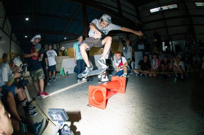 いかに短いプッシュでクロスコーンをオーリーで飛べるかを競うスケートコンテストやミニランプでのスケートゲームも行われ、重藤悠樹がW優勝。またBMXのワンメイクコンテストも開催され、フラットランドショーではIKBローカルの田中光太郎と北山 努が会場を盛り上げた。そしてイベントの締めにはチームHIGHSOXのライブが会場を沸かせ、アツい1日が幕を閉じた。