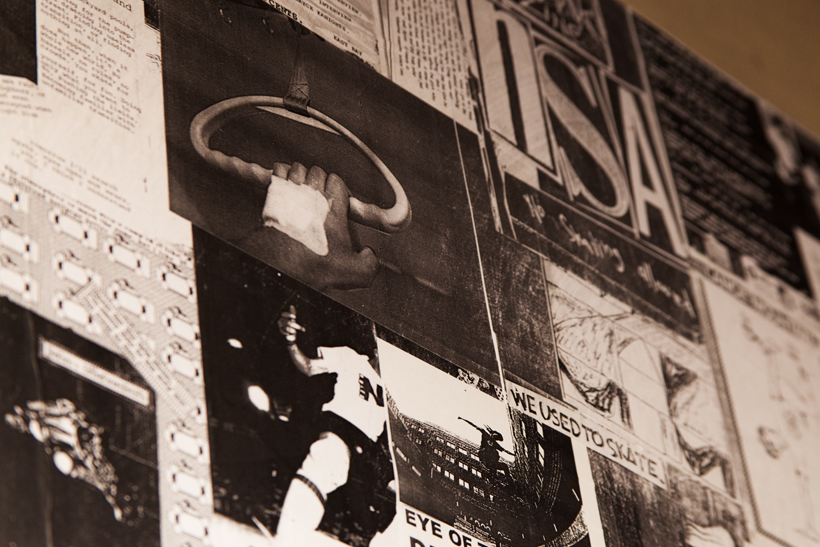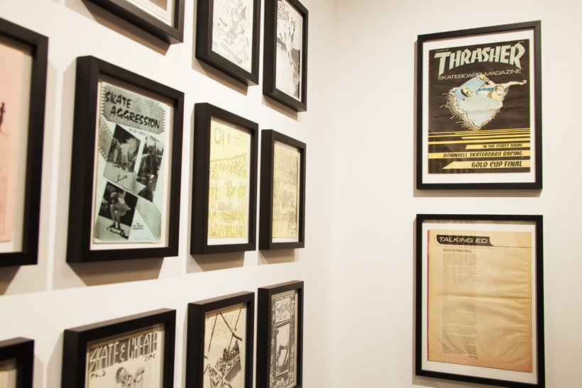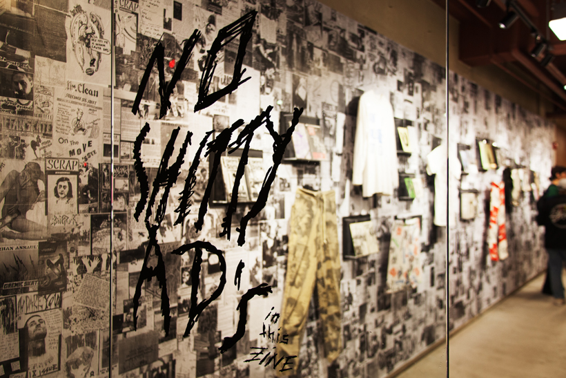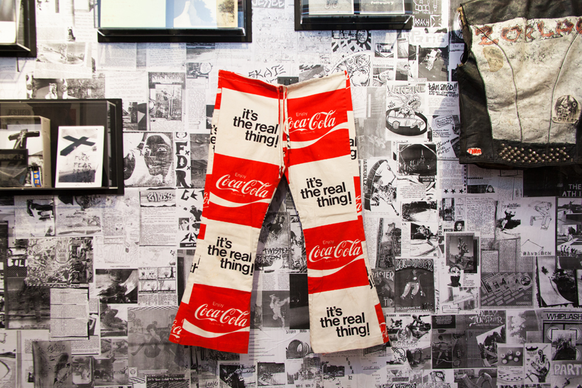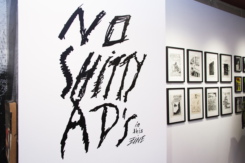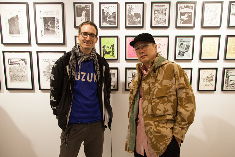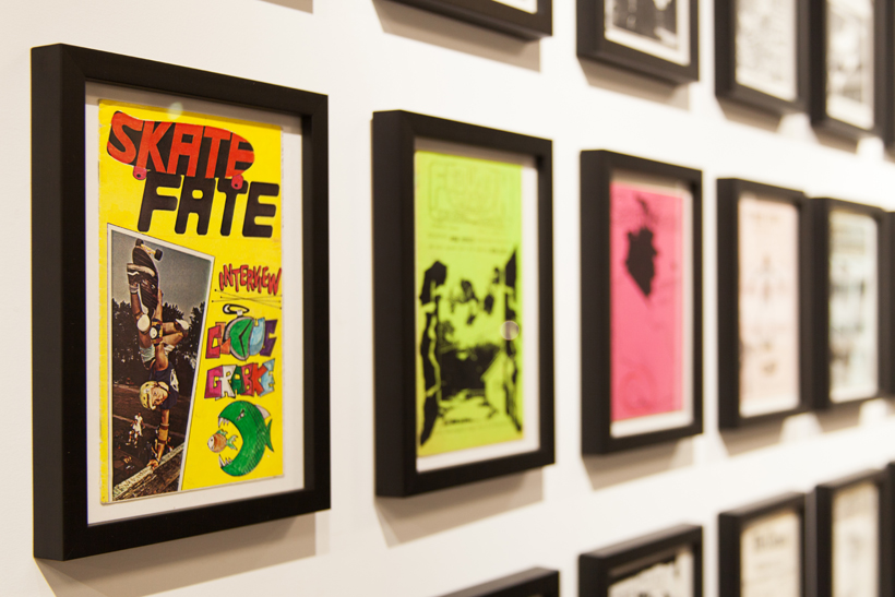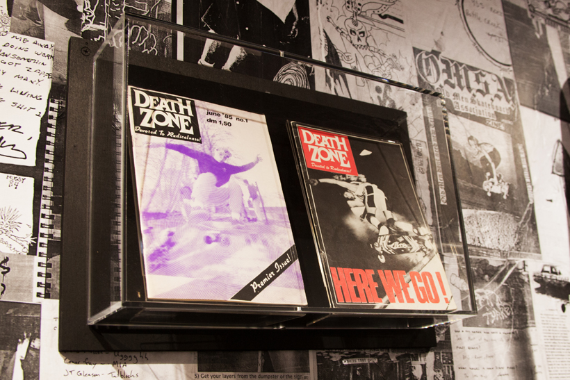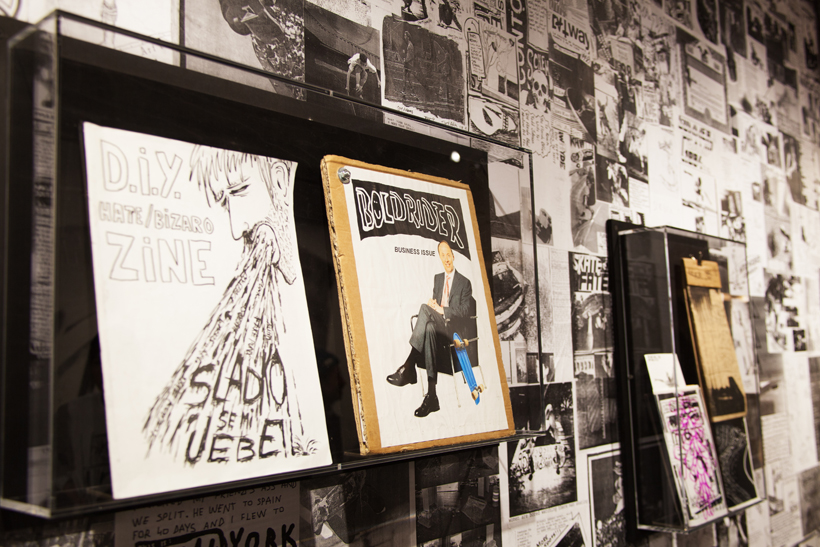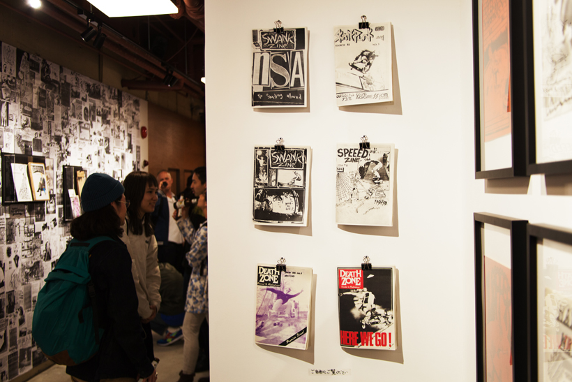 ベルリンのSkateboardmuseumとFACT.がキュレーションした今回の展示では、フォトグラファーのセルゲイ・ヴトゥックをホストに招き、世界中からセレクトされたZineやZineを用いたコラージュ、ヴィンテージのアパレルなどを会場内に展開。歴史的価値のある作品の数々や大迫力のコラージュに来場者は釘付けになっていた。