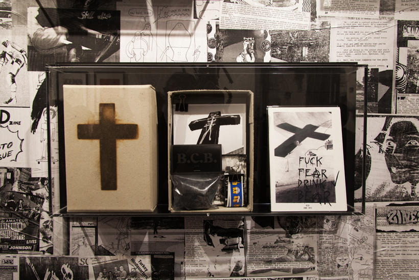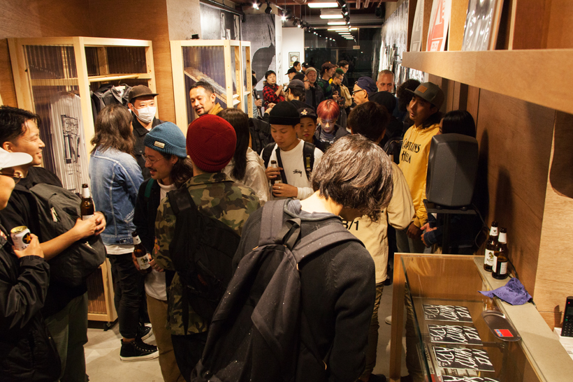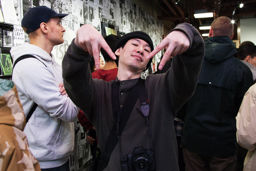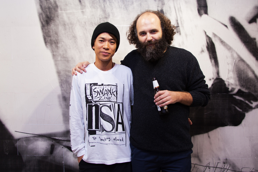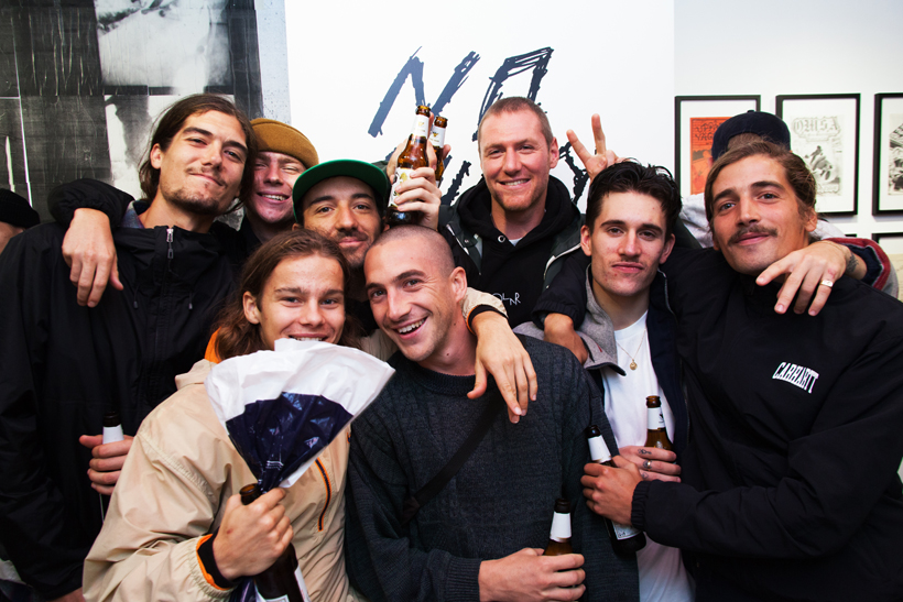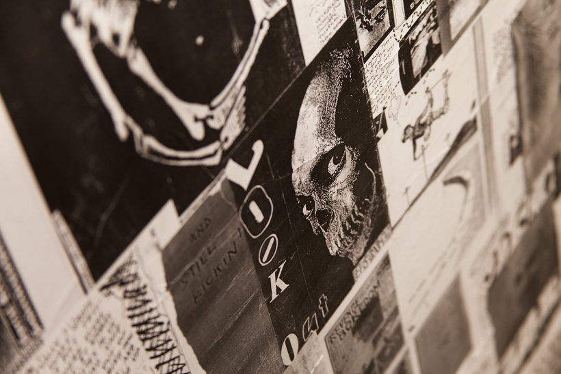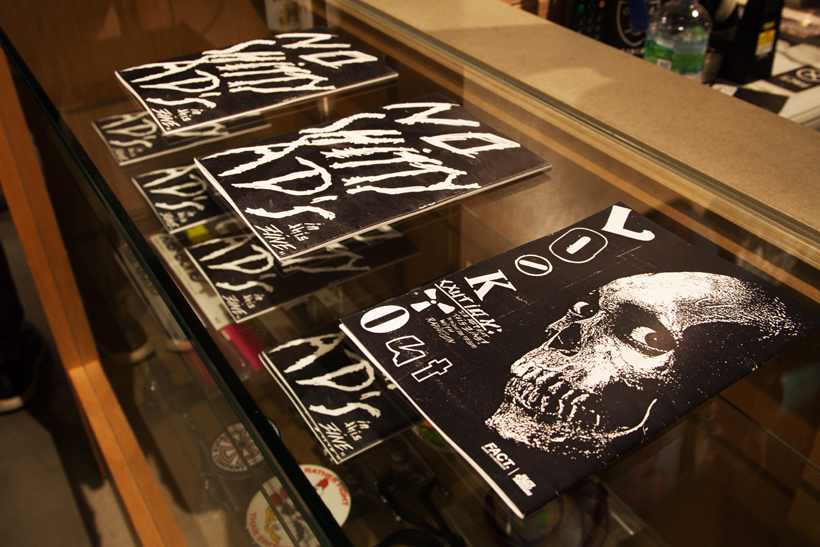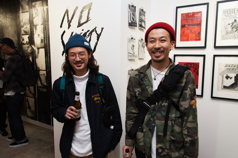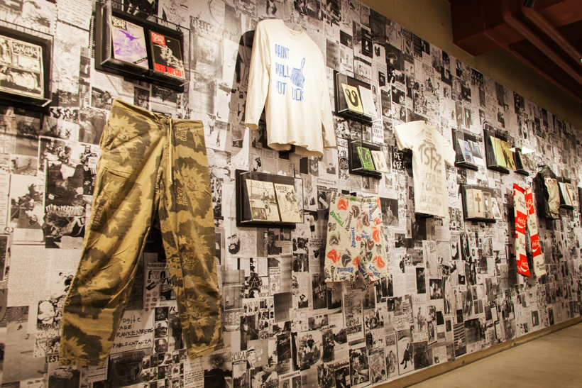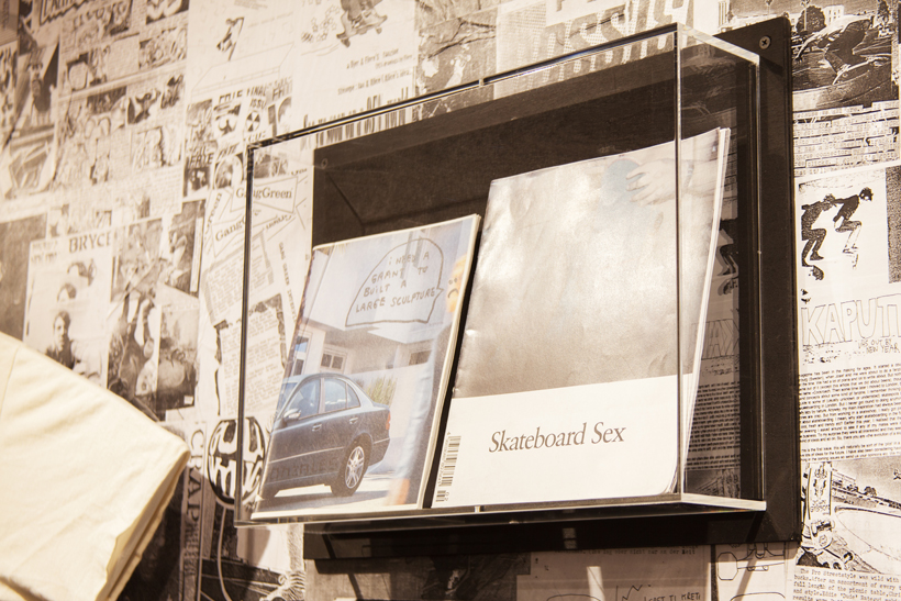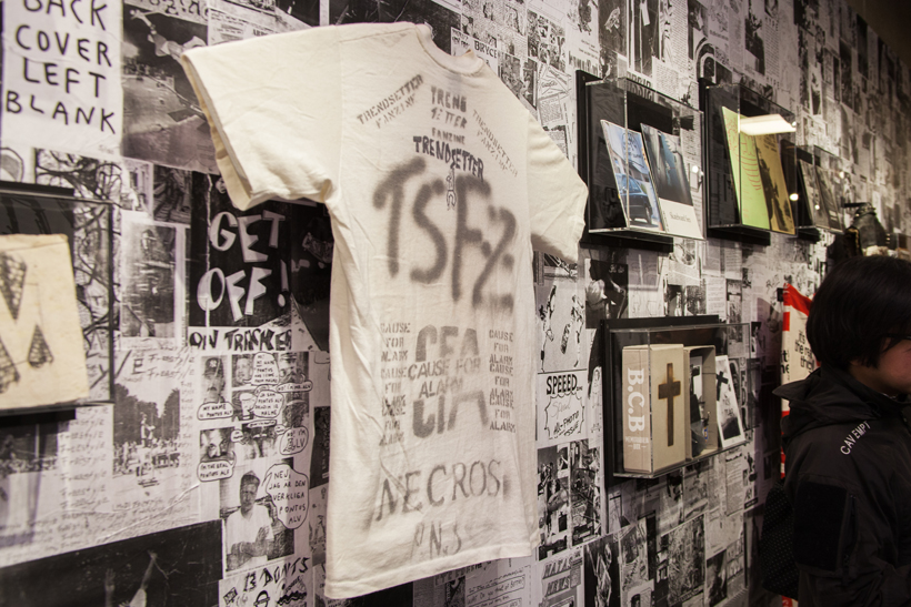 ベルリンのSkateboardmuseumとFACT.がキュレーションした今回の展示では、フォトグラファーのセルゲイ・ヴトゥックをホストに招き、世界中からセレクトされたZineやZineを用いたコラージュ、ヴィンテージのアパレルなどを会場内に展開。歴史的価値のある作品の数々や大迫力のコラージュに来場者は釘付けになっていた。