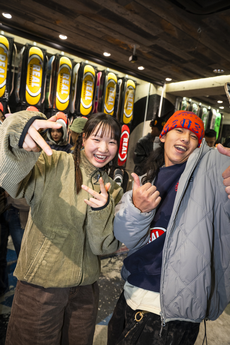 Realの最新作『Oval』の試写会がMortar Tokyoにて11月4日に開催された。平日の開催にもかかわらず、会場は男女問わず幅広い世代のスケーターでぎっしり。それもそのはず、本作は西矢 椛のRealの正式チーム加入をアナウンスする歴史的作品。日本人スケーターが海外で活躍するのが普通となった昨今ではあるものの、Deluxe系のボードカンパニーの壁をこじ開けたのはこれが最初。錚々たる面子と肩を並べる椛のウェルカムパートに会場のボルテージもMAX。歴史的な瞬間を祝福する一夜となった。